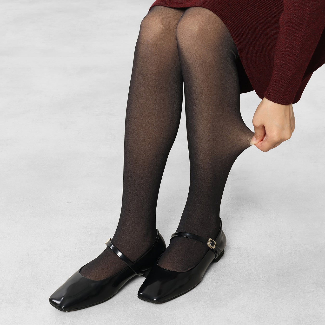 タイツの重い印象を変える!しっかり防寒しつつも、透け感でほっそり美脚を演出