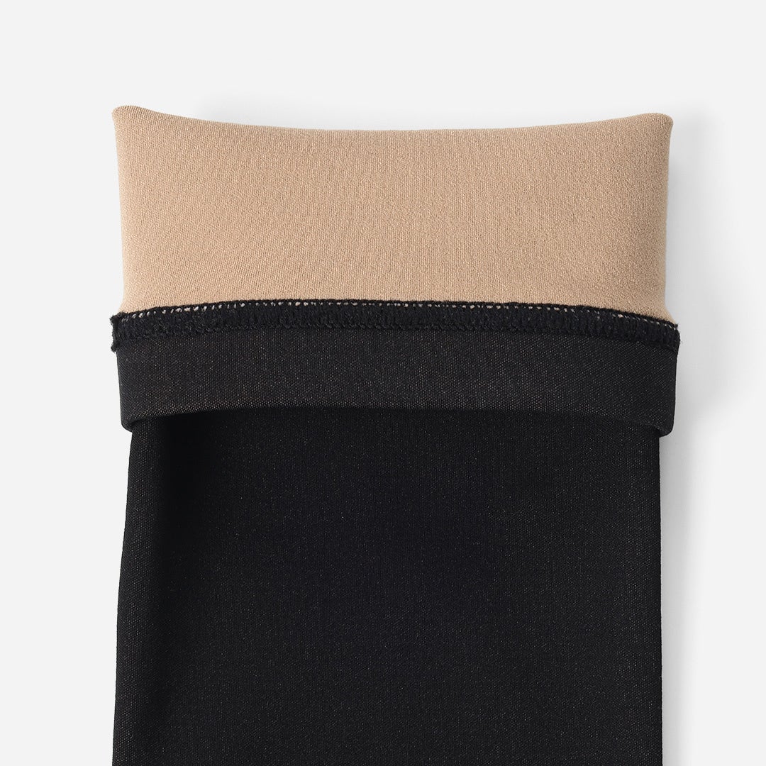そんなお悩みを解決してくれるアイテムとして、KEYUCAから「d 薄見えフェイク靴下」と「d 薄見えフェイクタイツ」の登場です。外側にブラック、内側にベージュを編み込む特殊な編地を採用することで、厚みがあって暖かいのにもかかわらず、まるで素肌に薄手のタイツをはいているかのような繊細な透け感を実現しました。しっかりと防寒はしたいけれど、脚をほっそり見せたい方にもおすすめです。