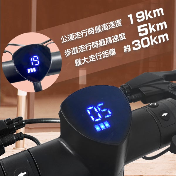 ● 最高速度:車道モード:19km/h、歩道モード:5km/h