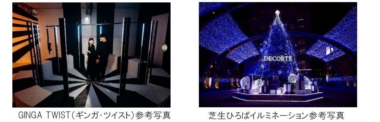 SNSで総再生回数500万回を超える人気撮影装置の一つ、「GINGA TWIST(ギンガ・ツイスト)」を渋谷区立宮下公園の芝生ひろばに設置します。GINGA TWISTは体験者の周りを360度回転しながら撮影できる装置で、螺旋状に回転するスマートフォンカメラと照明演出、背景が組み合わさることで、ミュージックビデオのワンシーンのような斬新な映像を撮ることができます。さらに、12月は同エリアで輝くイルミネーションの演出がされており、この時期限定のスペシャルな映像を撮影いただけます。