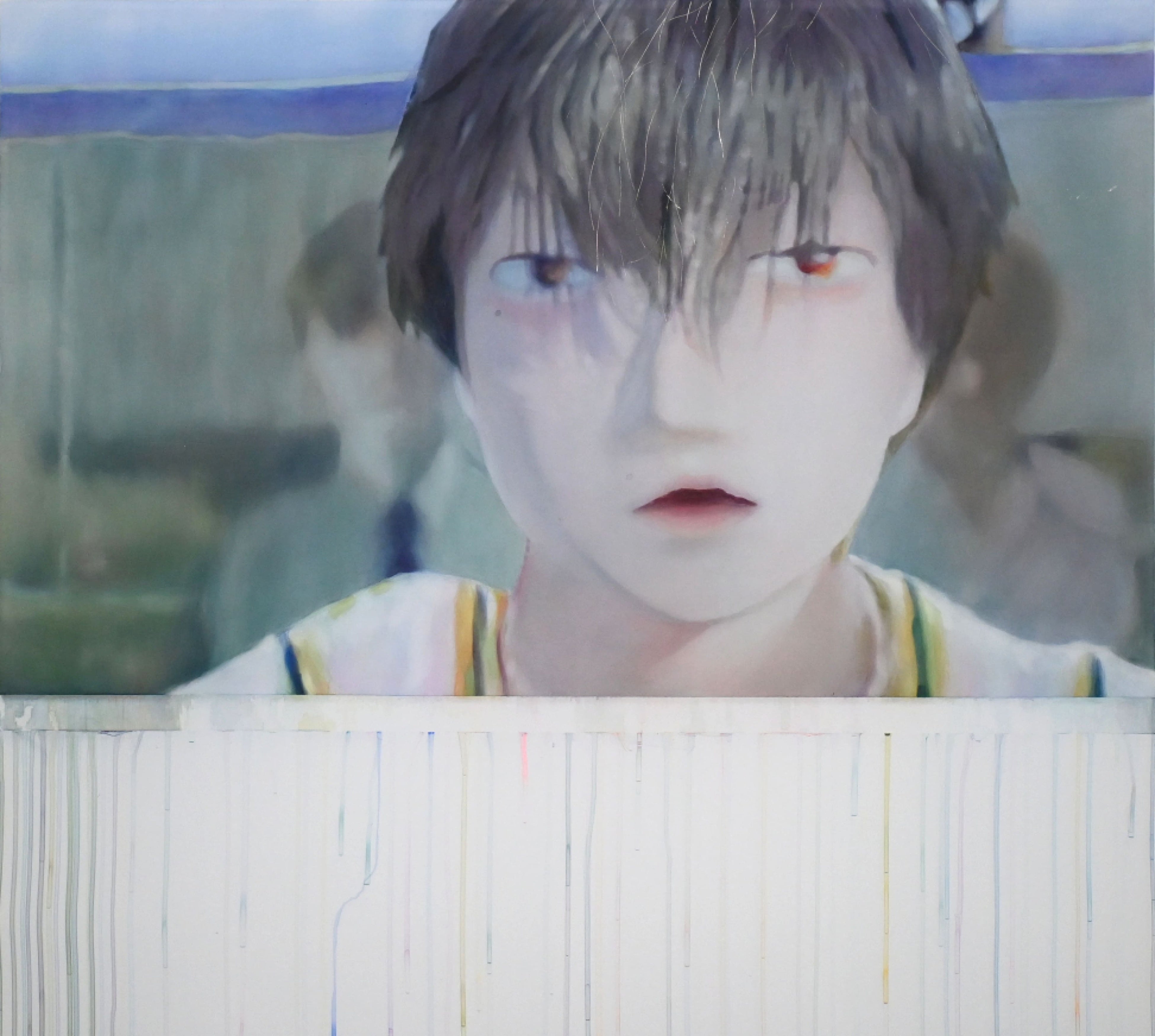 𠮷田の制作過程は思い描いた空想の世界を立体化し、映像を撮影することから始まります。イメージ内の登場人物、背景を立体造形として制作し、その場面の映像を一眼レフカメラで撮影します。𠮷田の作品は、その映像の中の1コマを描くことで生まれます。イメージをキャンバスに起こす過程の中で段階的にノイズが削ぎ落とされ、取捨選択を繰り返すことで、私的な世界が客観性を持ち、俯瞰されていきます。その結果、他者と共有可能なイメージを持つ、自立した絵画が生み出されています。描かれた淡い色彩と絵の具の垂れは、印刷した画像のような精密さと現実的なハプニング要素を兼ね備えます。