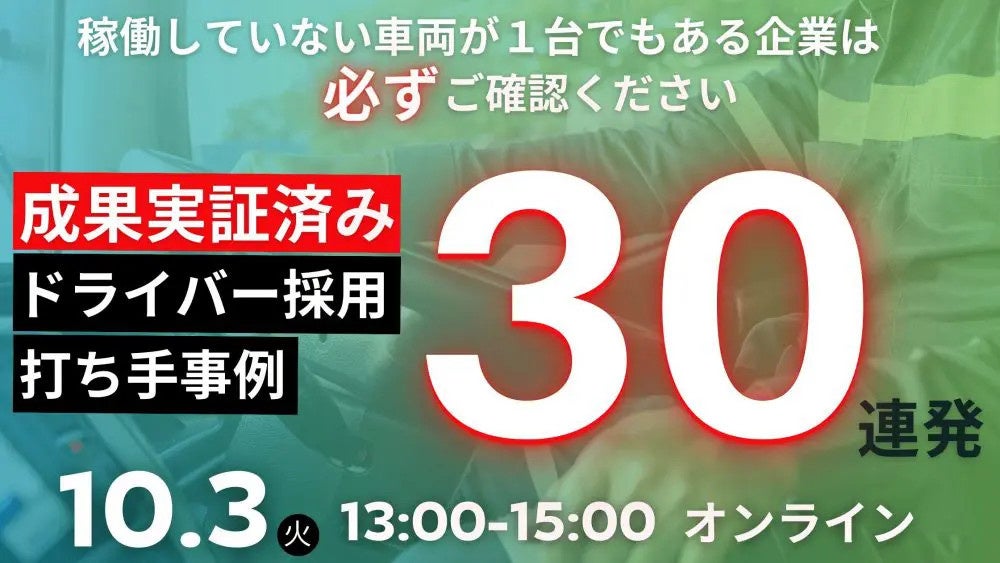 具体的なドライバー採用打ち手事例を大公開|2023年10月3日(火)開催「成果検証済みの採用打ち手事例30連発」
