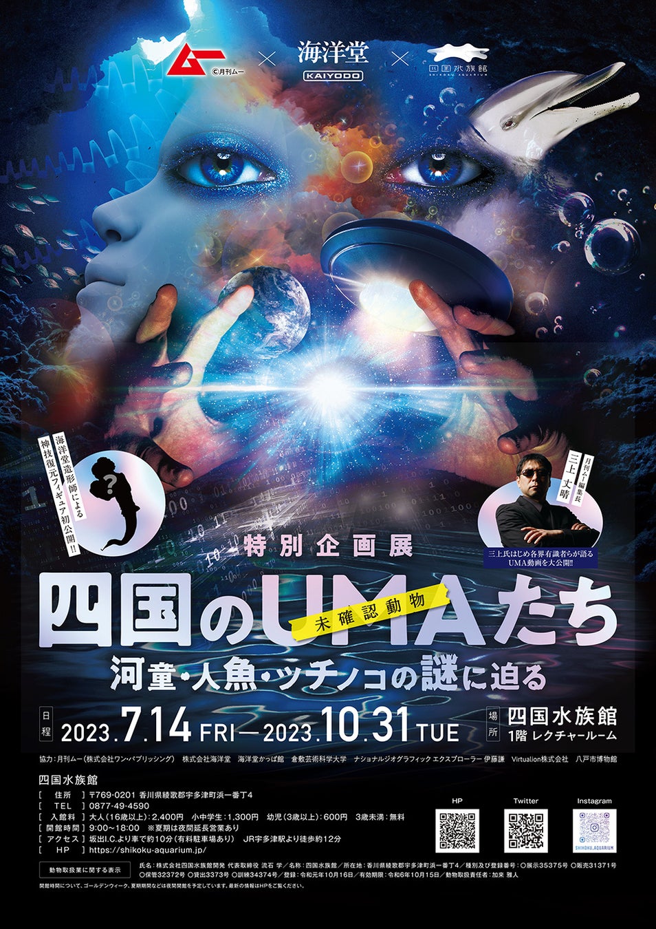 月刊「ムー」とのコラボレーション特別企画展 「四国の UMA(未確認動物)たち~河童・人魚・ツチノコの謎に迫る~」が7月14日(金)より四国水族館にてスタート