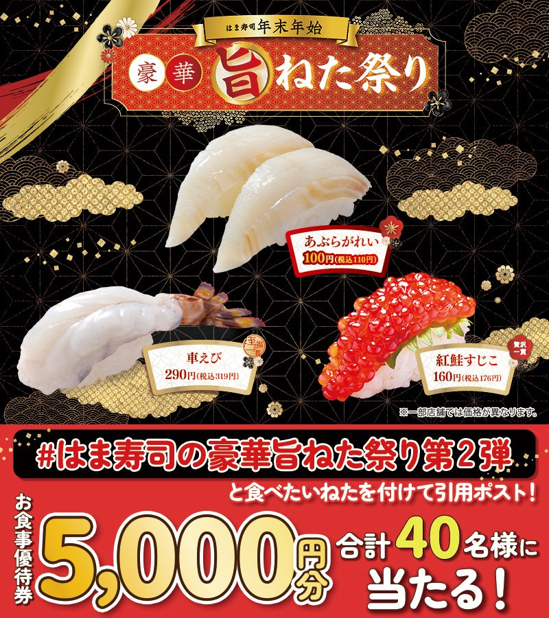ぜひこの機会に、お近くのはま寿司で「はま寿司 年末年始豪華旨ねた祭り 第2弾」をお楽しみください。