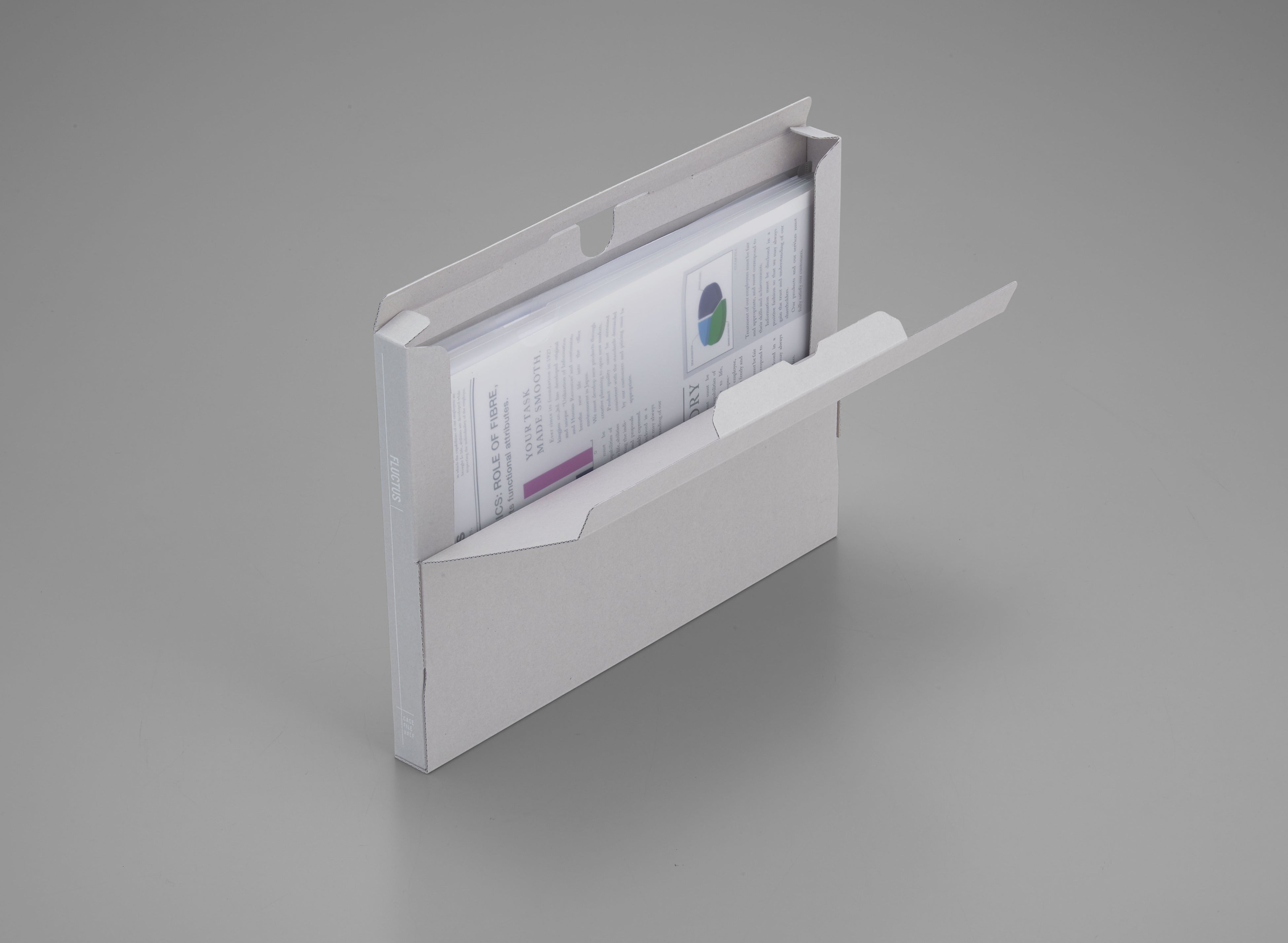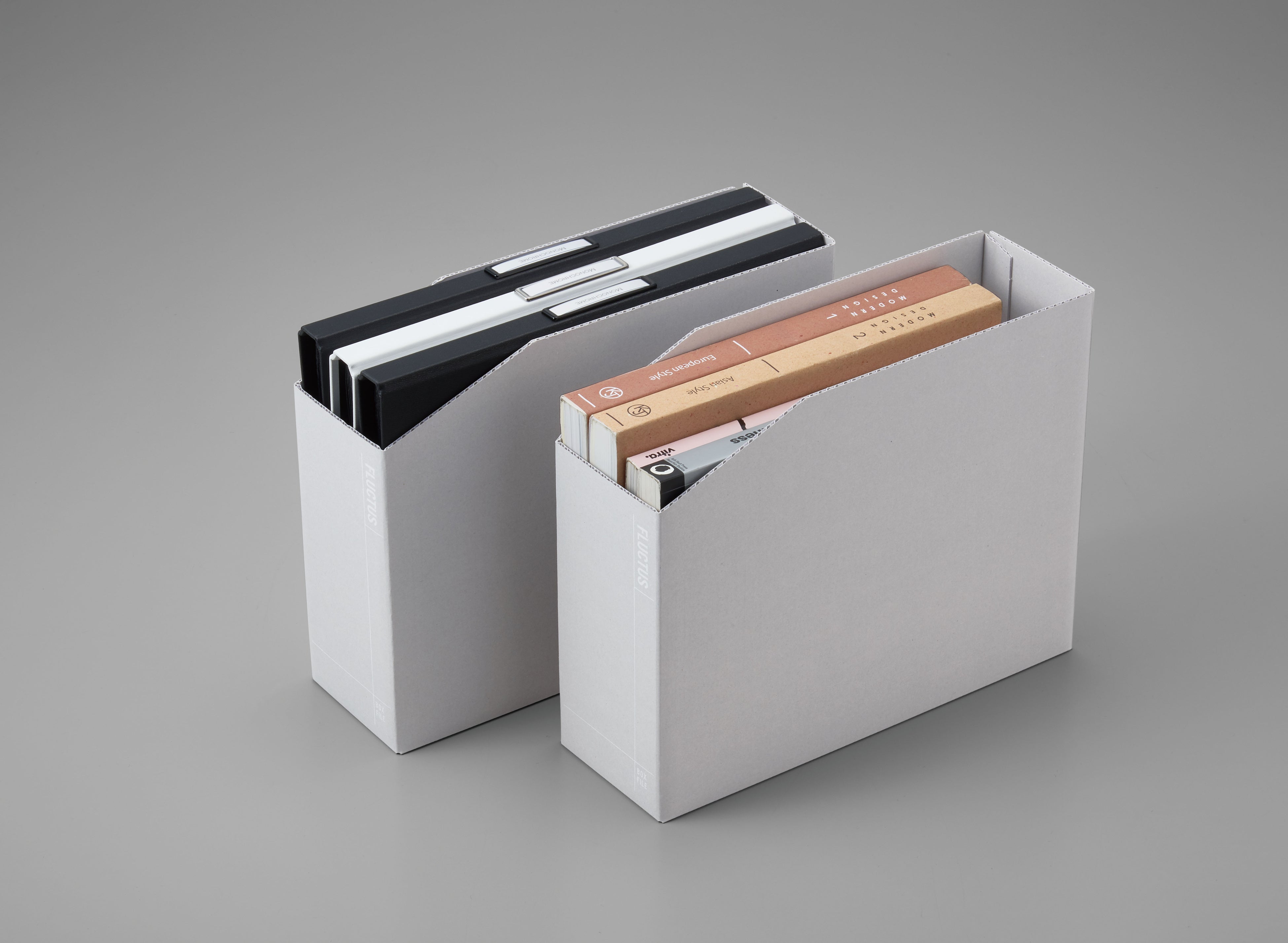 『FLUCTUS(フラクタス)』(以下、フラクタス)は、従来の紙製収納用品にあった「カットした面が処理がされていない」「高級感がない」といった不満点に着目して開発した紙製収納シリーズです。