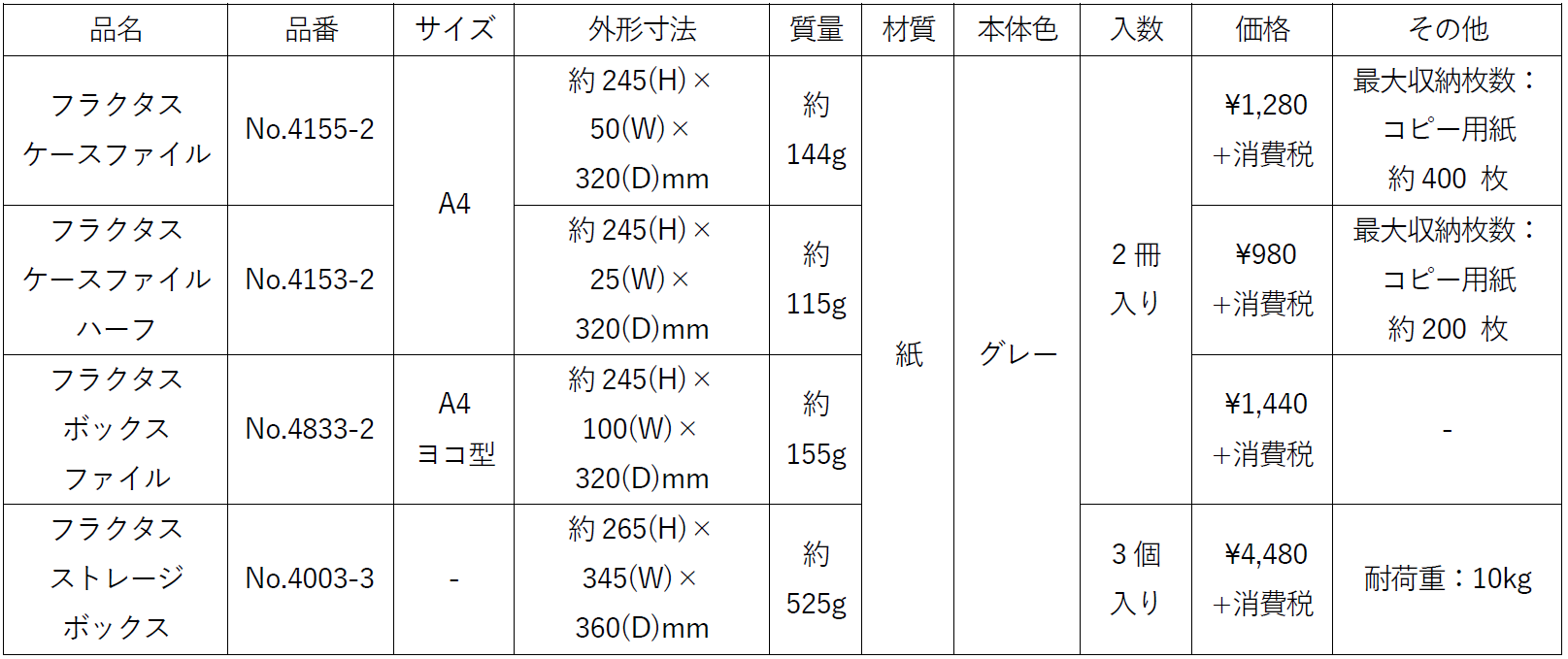 ※「フラクタス ボックスファイル」は除く