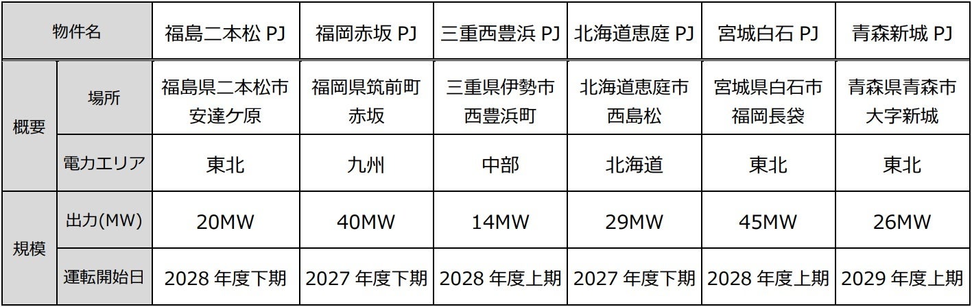 ~特別高圧 全国6物件・174MWを2027年度より運転開始~