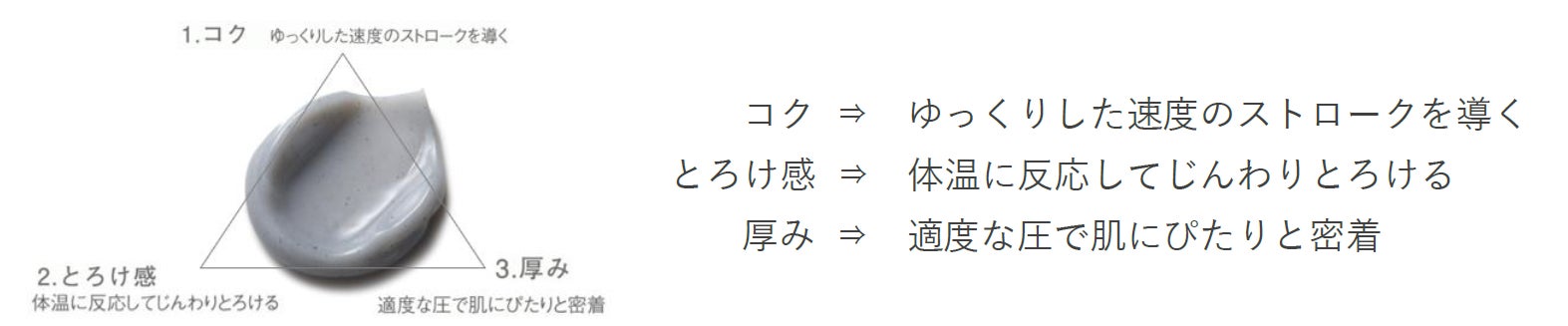 かっています。そんな肌と心にここちよい動きを自然と導くテクスチャーに秘められた3つのこだわり。