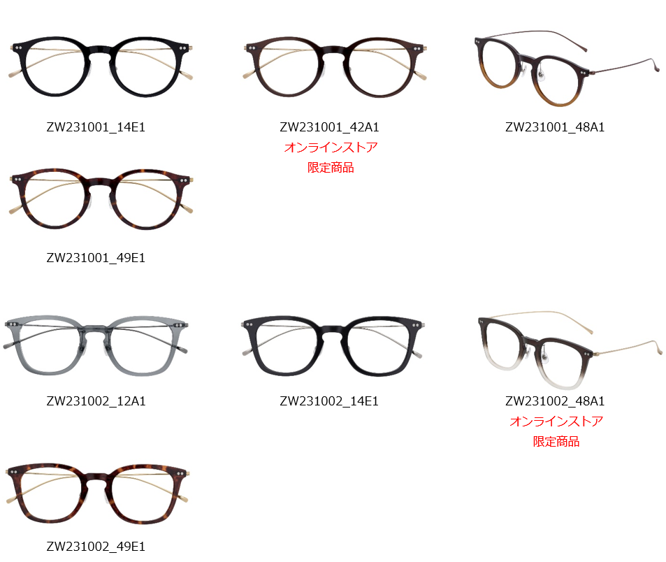 【種類】TITANIUM ANTIQUE 7型全21種類(オンラインストア限定商品)、TITANIUM NORDIC 5型全15種類、LIGHT MATERIAL COMBI 2型全8種類(オンラインストア先行販売)