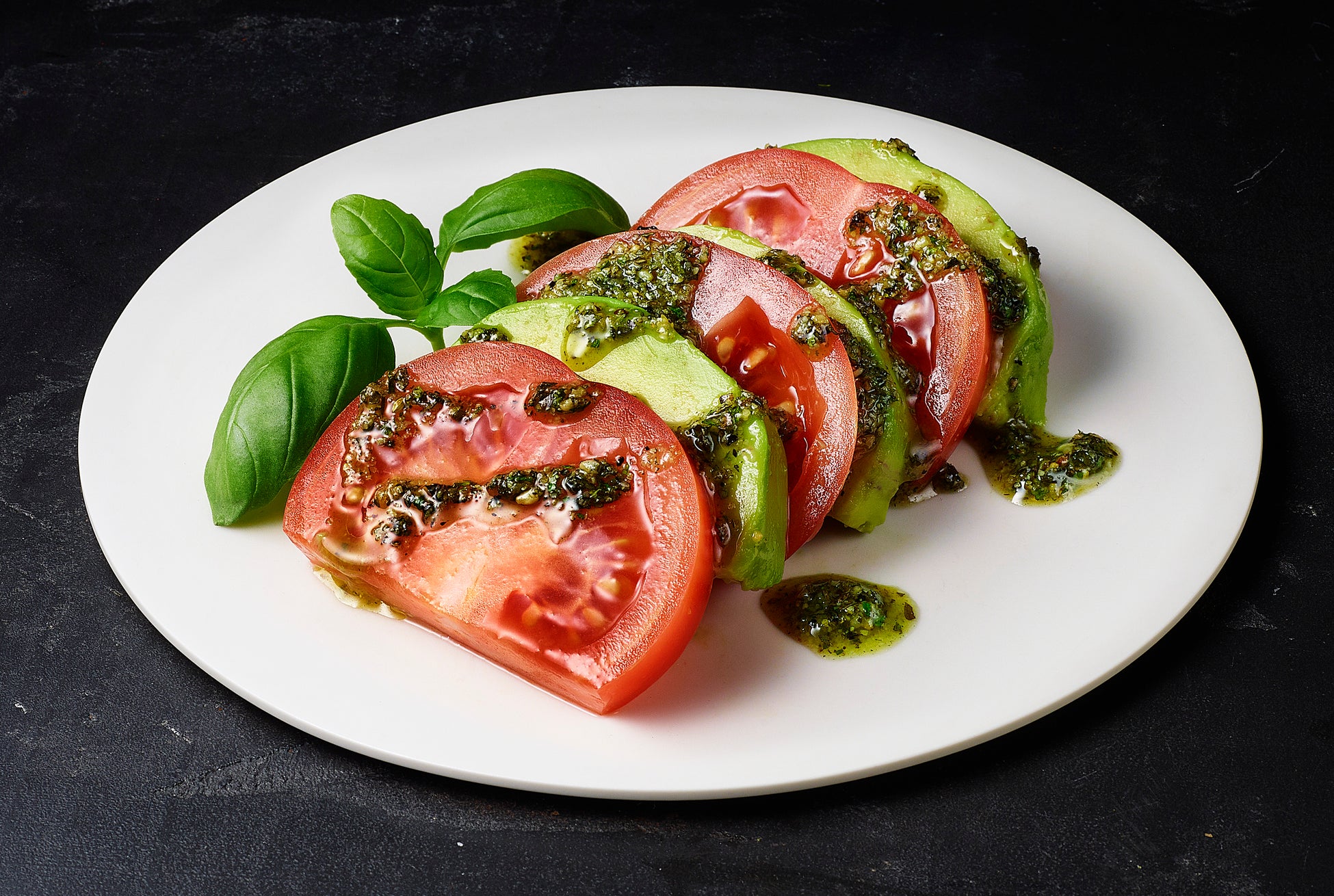 オリーブオイルに混ぜ、カットしたアボカド、トマトにかけるだけで完成です。