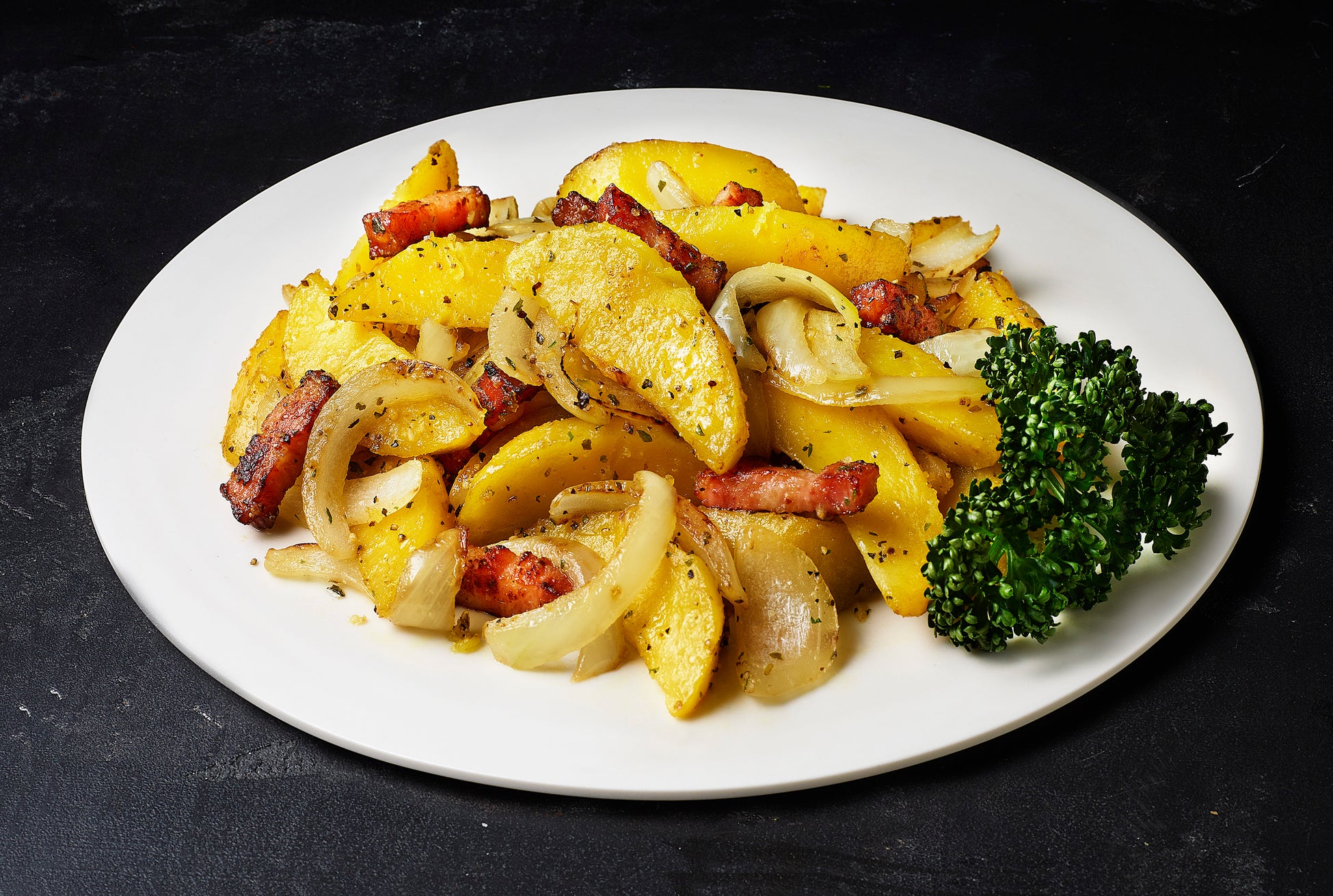 じゃがいも、玉ねぎ、ベーコンとフライパンで一緒に炒めるだけで完成です。