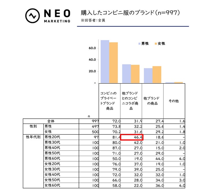コンビニ服の購入理由が「特定ブランドとのコラボ」である率が、男性20代で最多に|コンビニファッションに関する調査