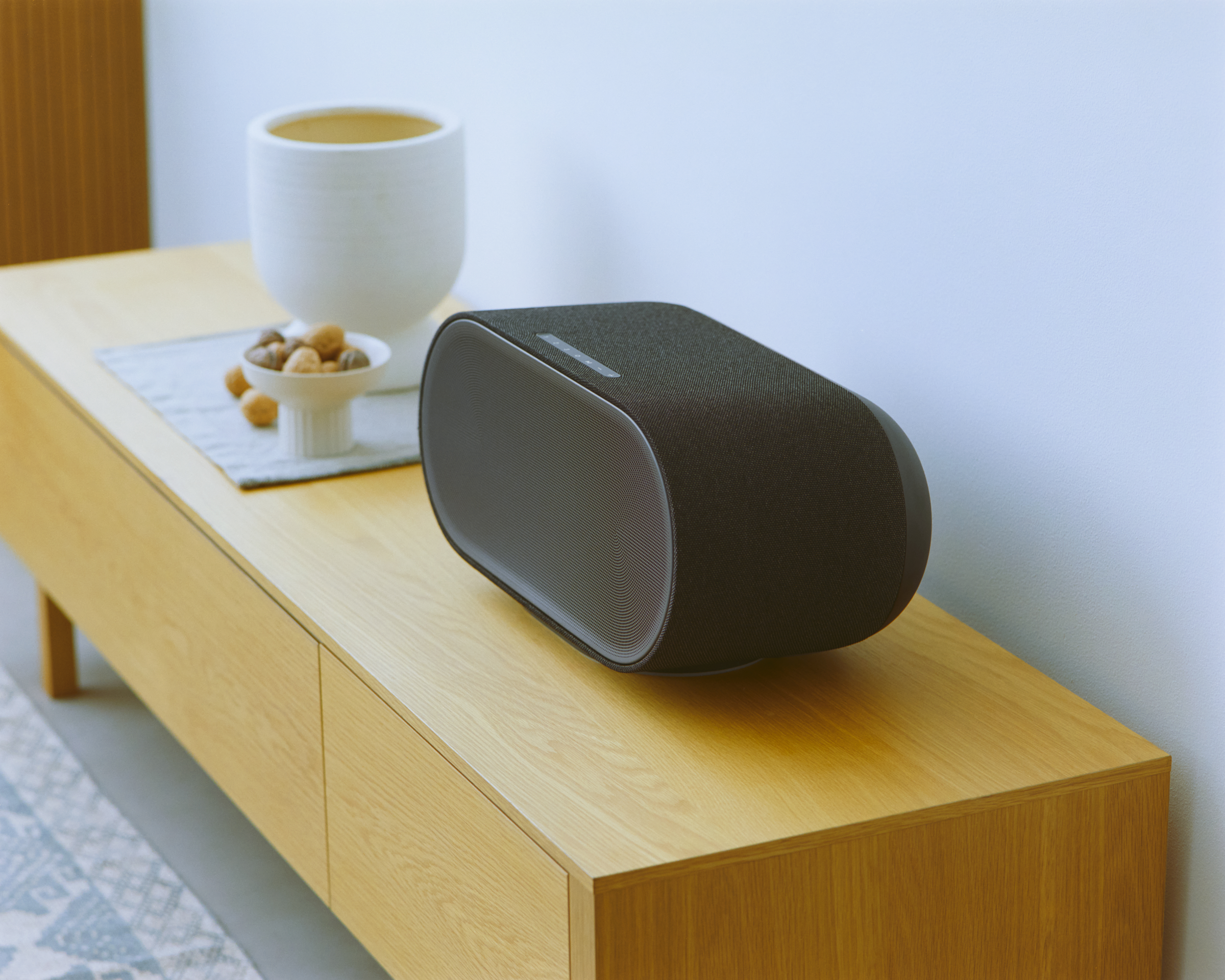 柔らかなフォルムに込められた、確かなエンジニアリング。どんなインテリアにも自然に溶け込みながら、バランスの整ったHi-Fiサウンドで日々のリスニング体験をレベルアップさせます。