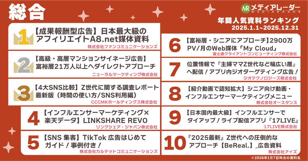【2025年】年間人気資料ランキングを発表!No.1*の広告・マーケティングプラットフォーム「メディアレーダー」