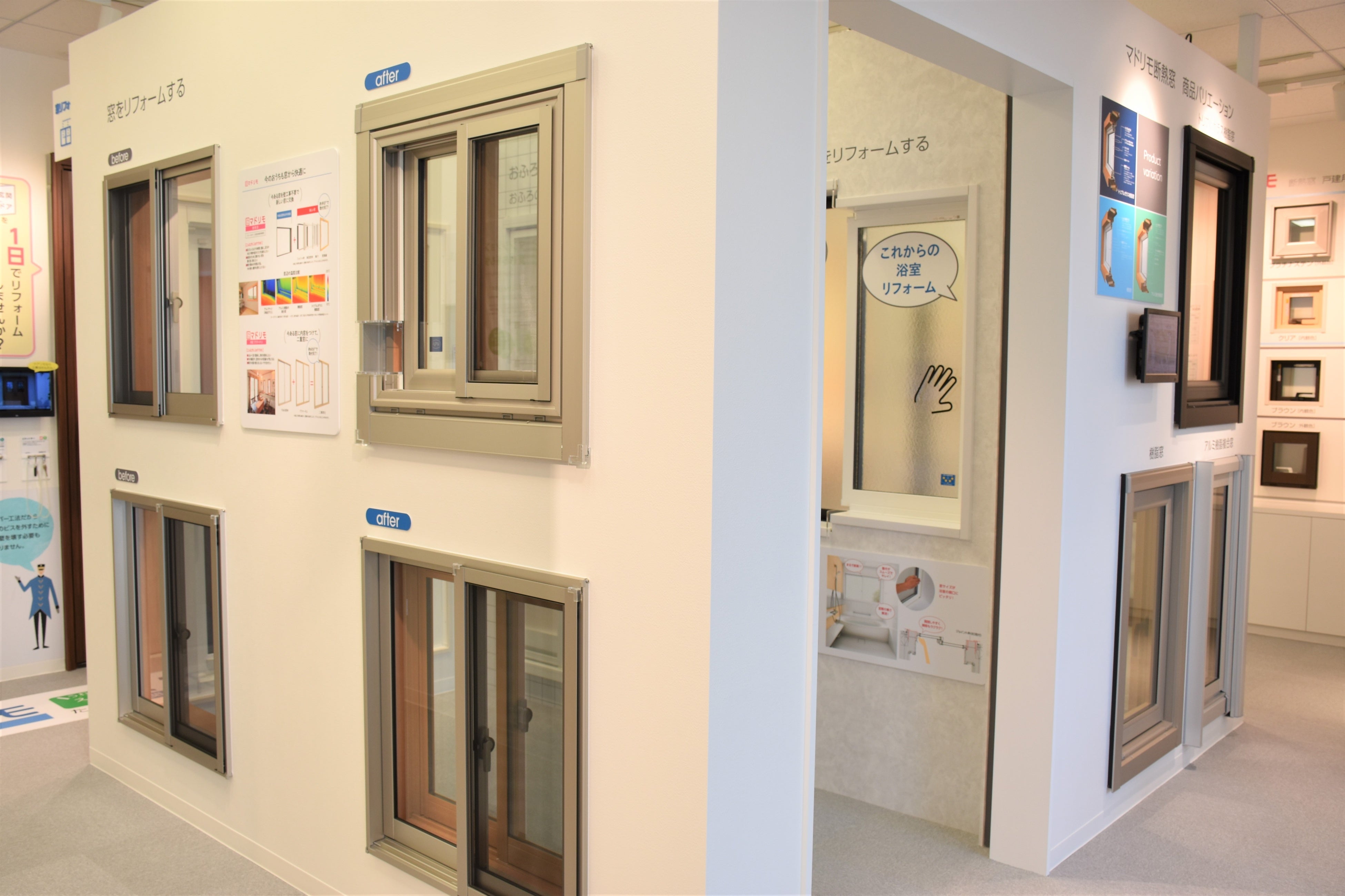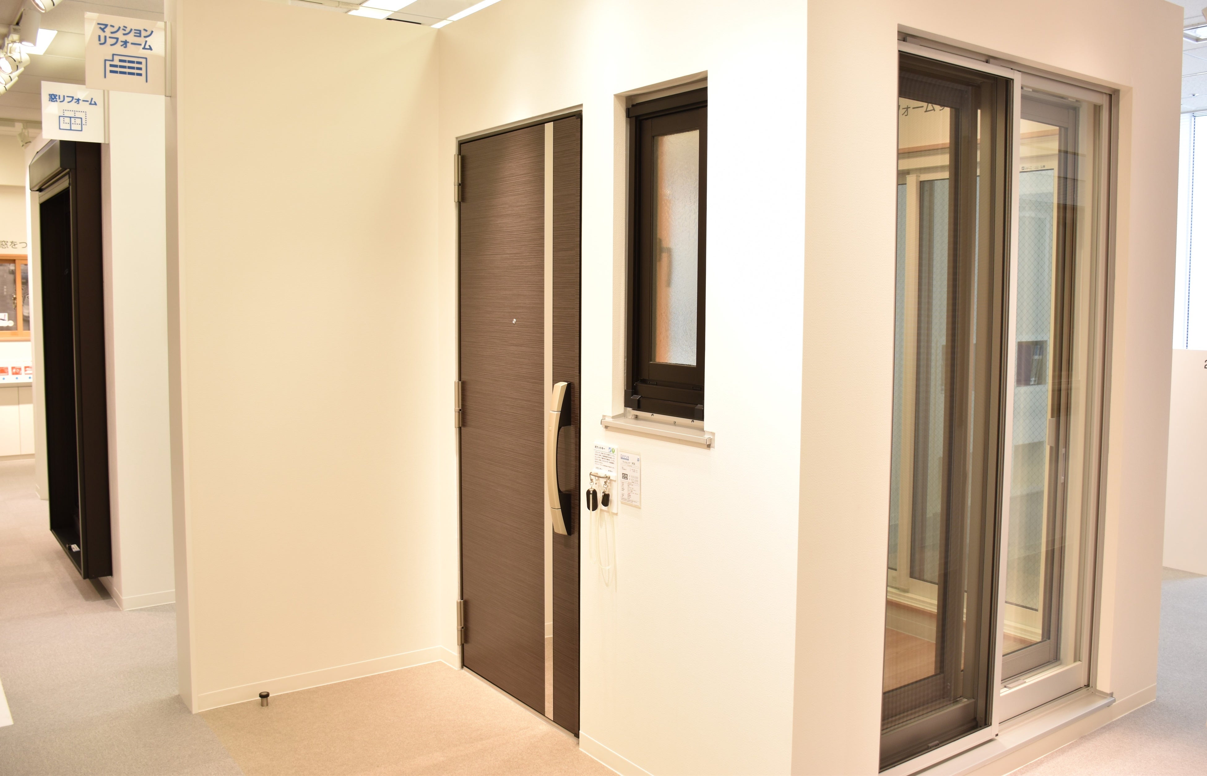 大都市に位置するショールームとして、多くのご要望をいただいていたマンションリフォーム向け商品を新たに展示します。戸別にリフォームできるマンション用の納まりに対応した内窓や、たった1日で断熱窓や断熱ドアに交換できる商品を紹介します。