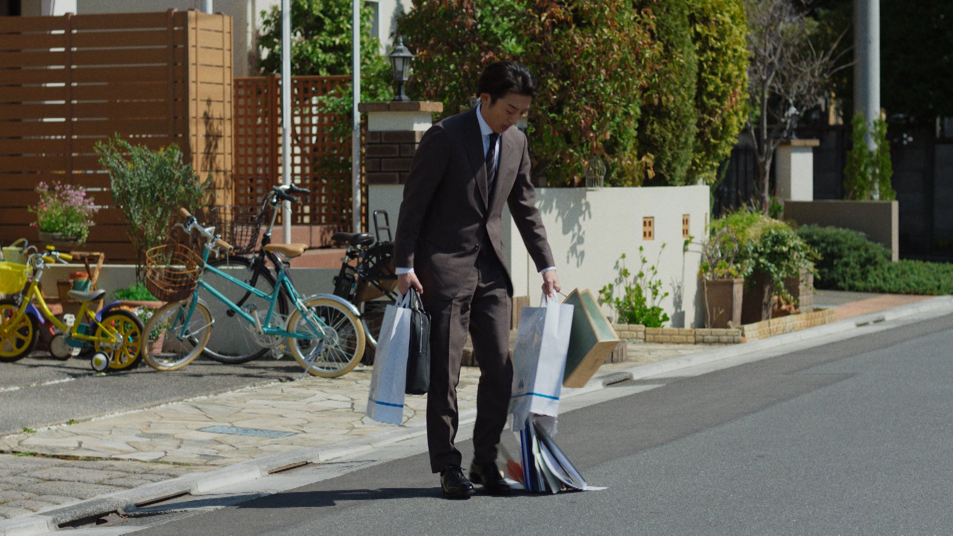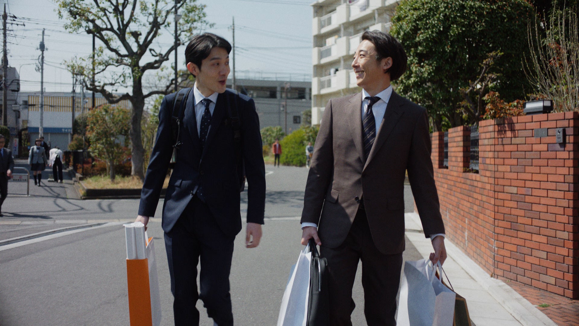 早朝、いつものように会社に出勤するため駅に向かう会社員を演じる高橋一生さん。隣人と出勤のタイミングが重なり、「おはようございます、いつも早いですね」、「いえいえ、そちらこそ」と挨拶をしながら歩き始める二人。横を歩く隣人に高橋一生さんが「そういえば、駅前のパン屋いきました?」と問いかけるも返答がなく、振り返ると「タイムズカー」のあるタイムズパーキングへ向かう隣人の姿が。不思議そうに見つめる高橋一生さんに対して、「今日はカーシェアで外回りなんで」という隣人の言葉に「カーシェア?」と疑問続きの高橋一生さん。どうやら、隣人は会社が契約するタイムズカーを予約していて、会社には向かわず自宅近くにあるタイムズカーでそのまま営業周りに出発するようです。その様子を羨ましそうに見つめるとともに、“カーシェアリングで直行直帰”という働き方が浸透しつつある時代の変化に「今って、そうなってんの!?」と驚く高橋一生さん。最後は、「お先でーす」と颯爽と走り去るタイムズカーに乗った隣人に「いいなぁ」と羨む表情を向ける高橋一生さんにも注目です。