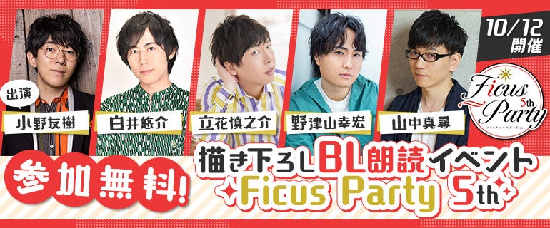 小野友樹、白井悠介、立花慎之介、野津山幸宏、山中真尋、出演!大好評朗読イベント『Ficus Party 5th』初の有観客で10月12日(土)に開催決定!8月18日(日)より応募受付スタート