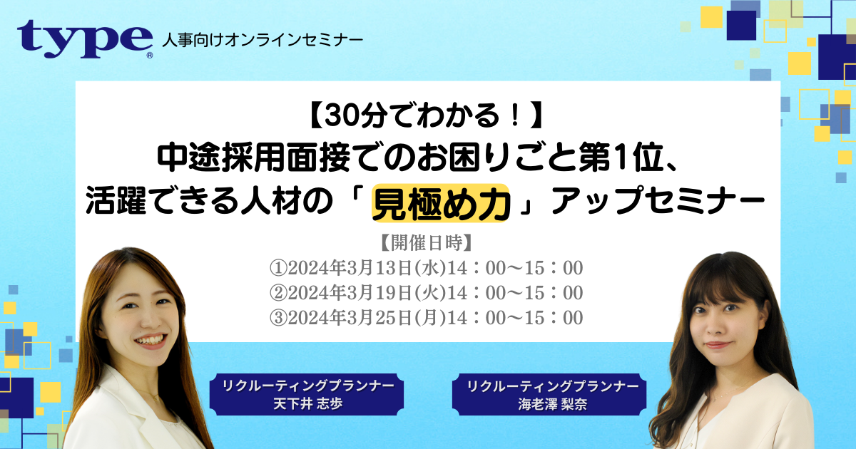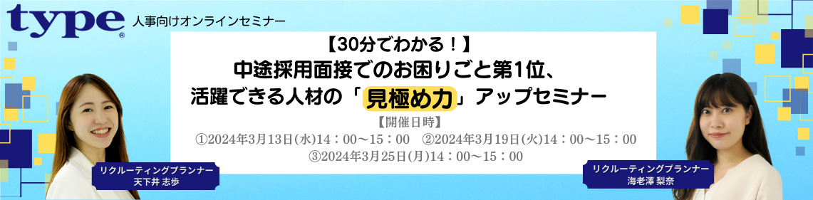 転職サイト「type」では、3/13(水)・3/19(火)・3/25(月)の14時より人事様向けセミナー