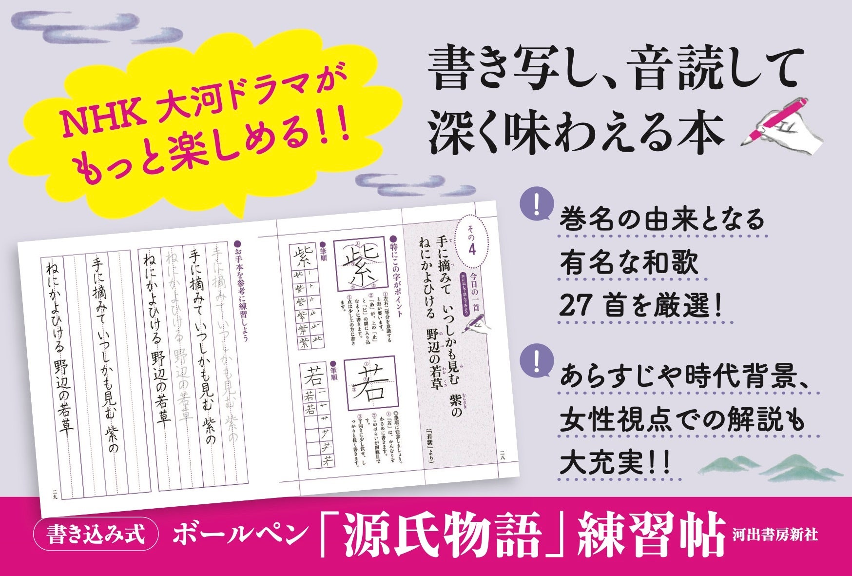 【大河ドラマの世界を味わいながら、美文字も習得できる!】女性視点での解説も充実した『書き込み式 ボールペン「源氏物語」練習帖』、12月25日発売!