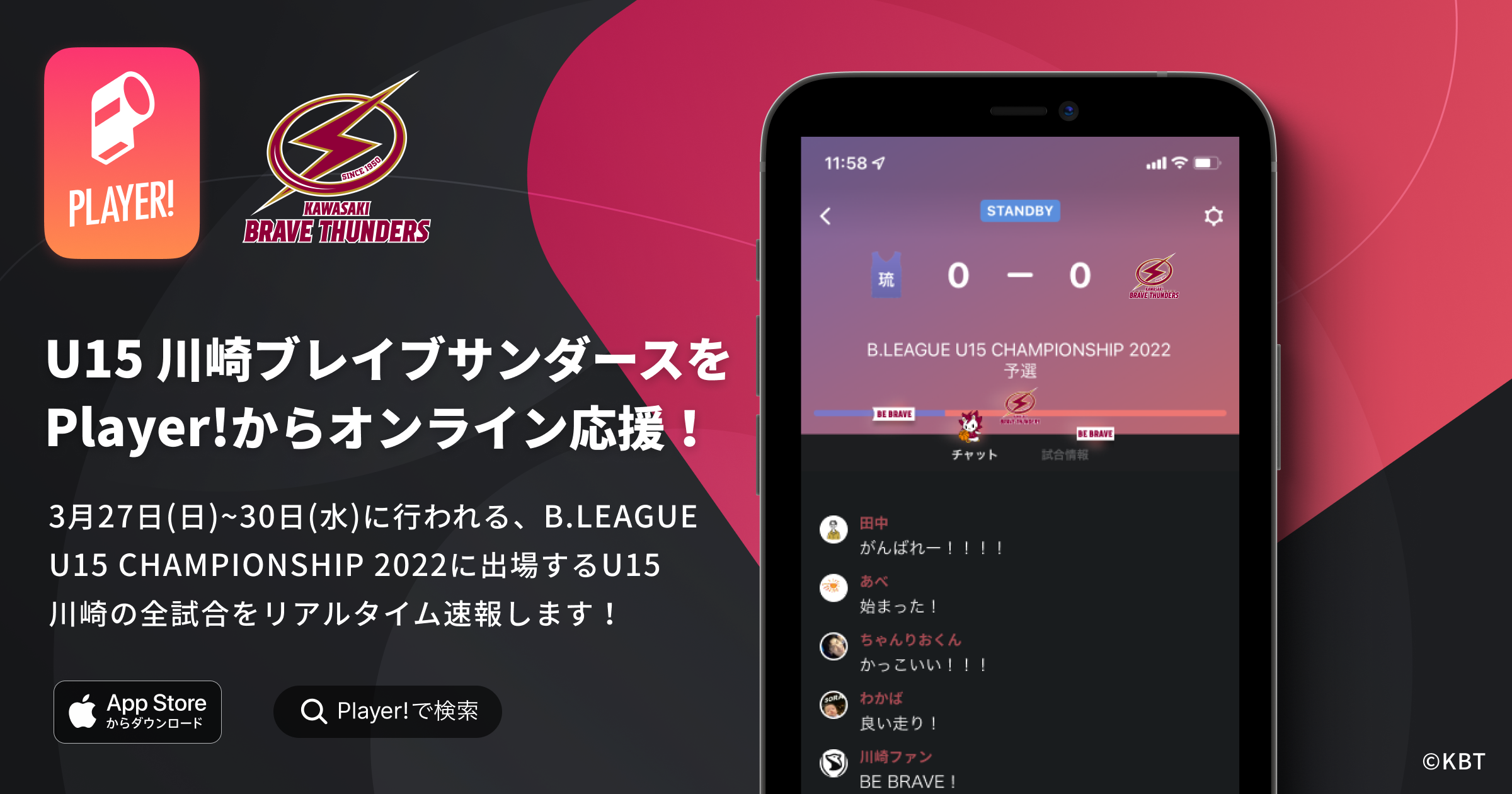 スポーツスタートアップ企業 ookami は、スポーツエンターテイメントアプリ「Player!」において、3/27(日)より行われるB.LEAGUE U15 CHAMPIONSHIP 2022に出場するU15 川崎ブレイブサンダース全試合のテキスト速報を⾏います。