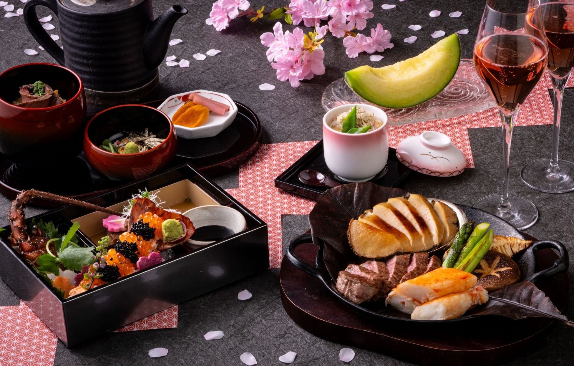 桜を目の前にする桟敷席で、神戸ビーフや山海の幸を味わい尽くす贅沢なお花見を。