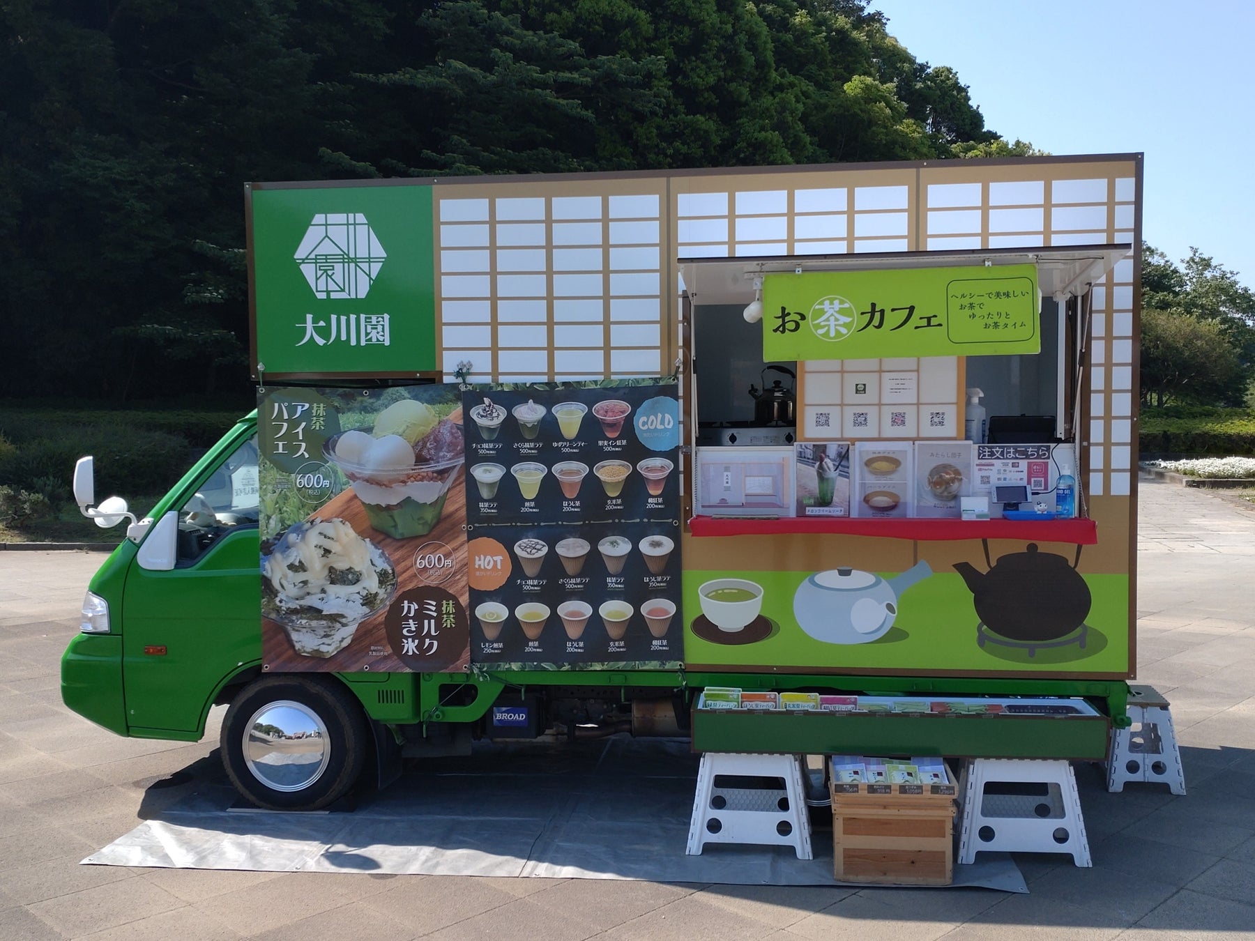 日本茶スタンドとキッチンカーでお茶・抹茶スイーツを手軽に提供しています。