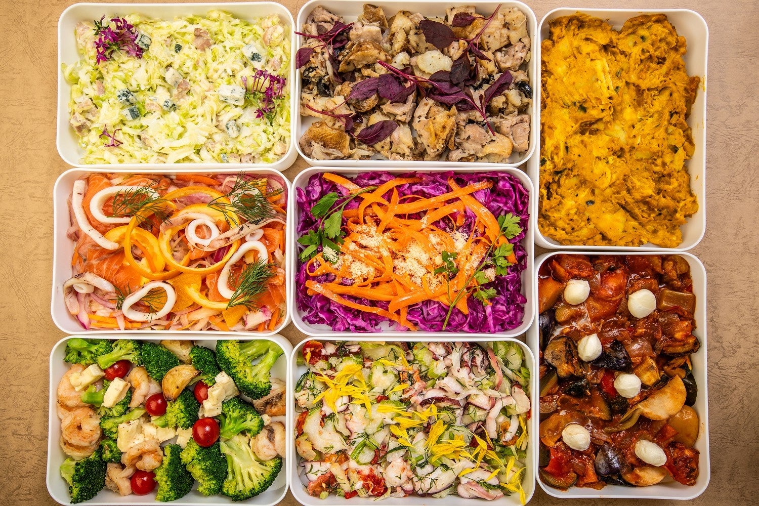 お肉やお魚、地元のお野菜を使ったお惣菜を常時8種類ご用意。