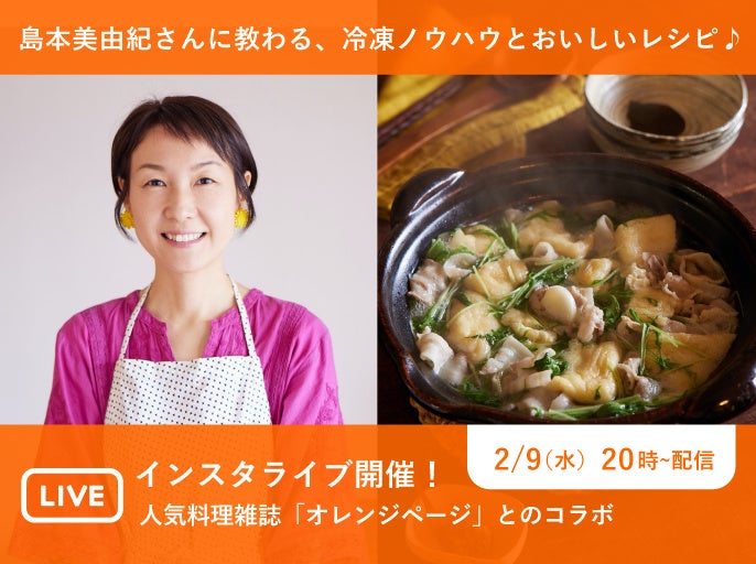 今日から役立つ!冷凍テク ~島本美由紀さんに教えてもらう、おいしい冷凍活用レシピ~【2/9(水)20時からインスタライブ配信】視聴者プレゼントも実施!