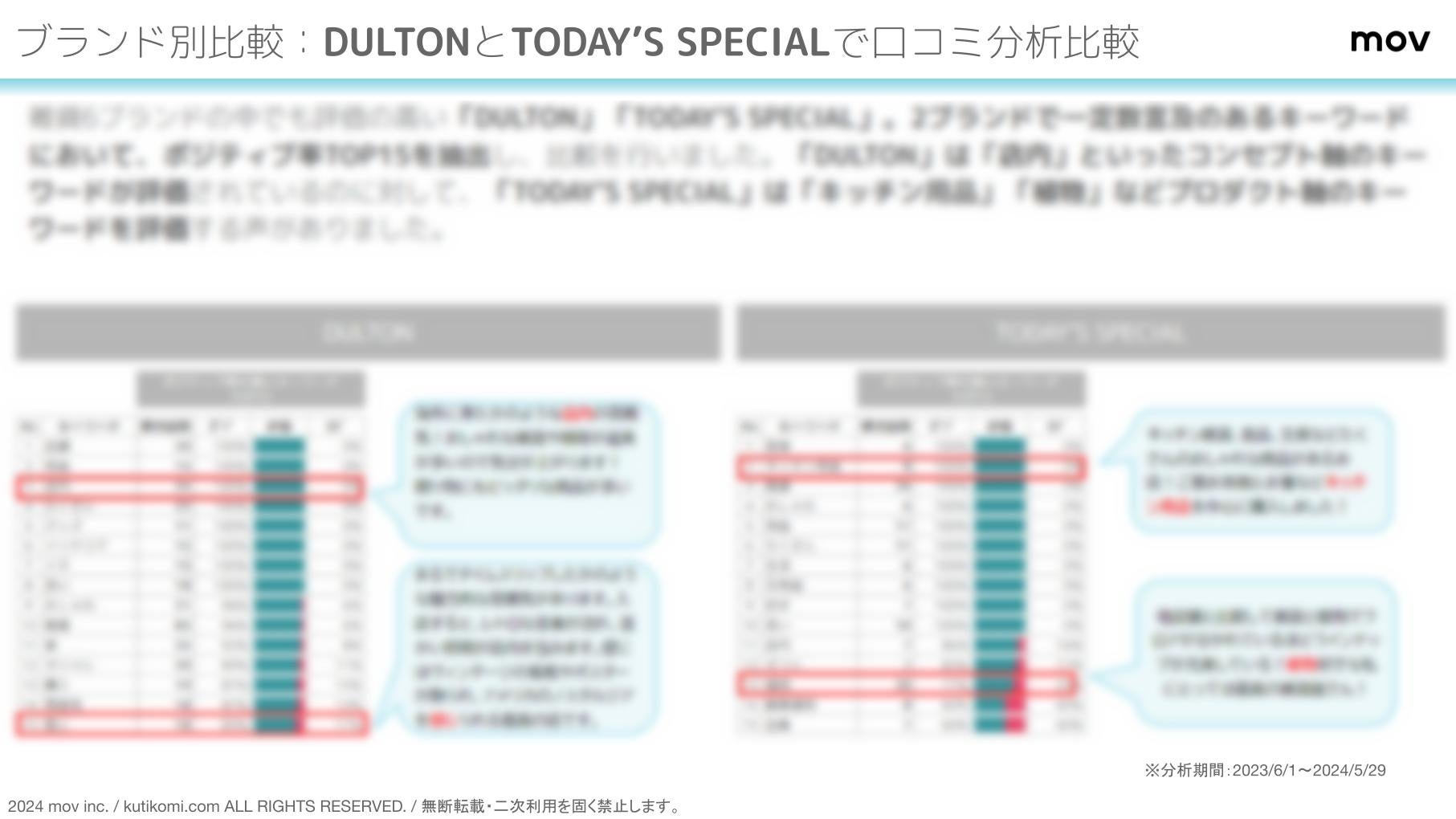調査内容の詳細をご覧になりたい場合は、レポートをダウンロードしてご覧ください。また、自社の分析を希望される方は株式会社movまでお問い合わせください。