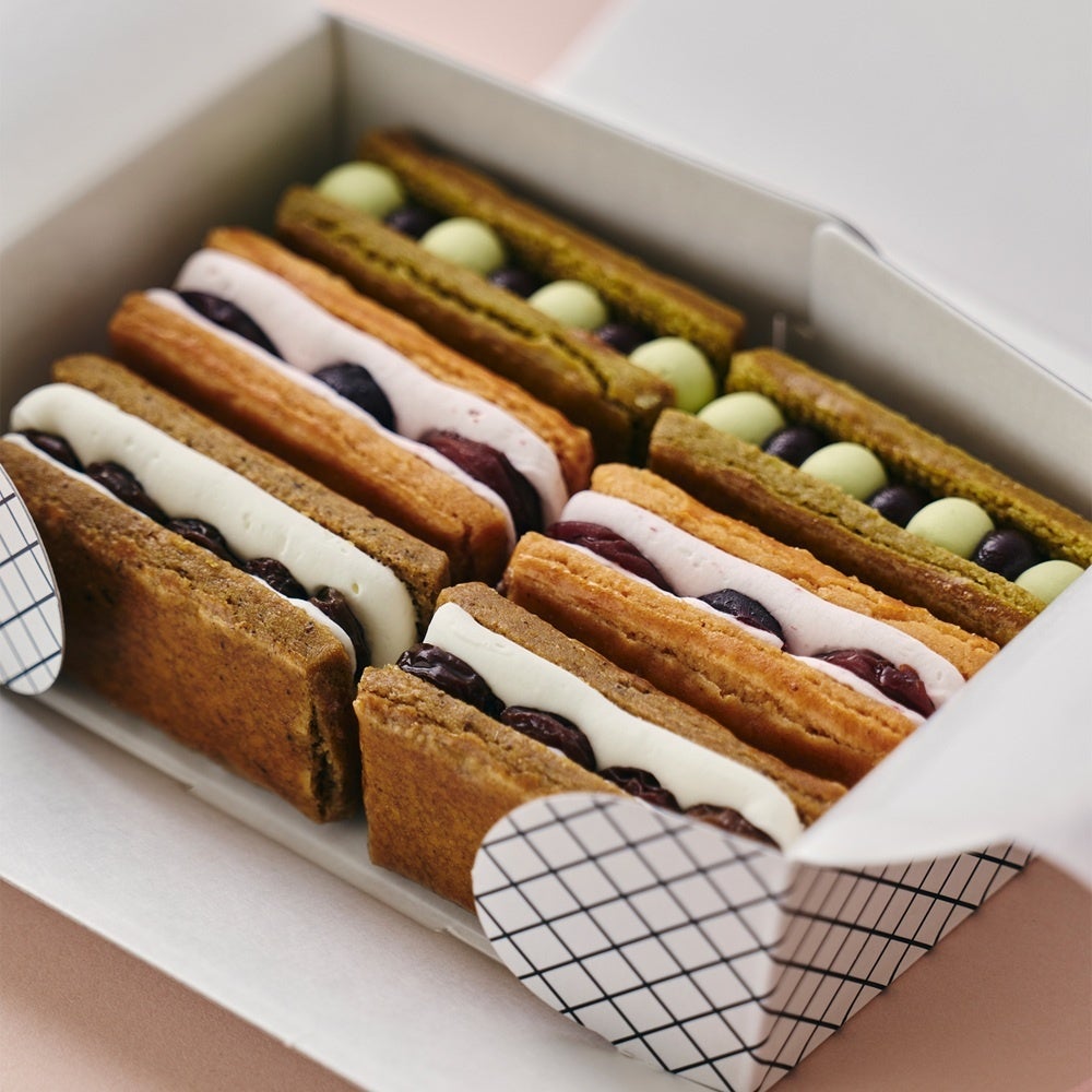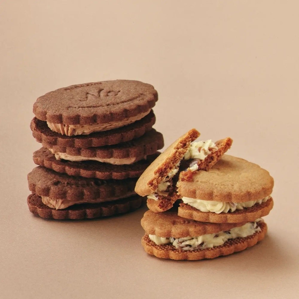 「(NO) RAISIN SANDWICH」は、「レーズンは嫌いだけれどレーズンサンドを食べてみたい」というフードエッセイスト平野紗季子の願いから着想して生まれた、「レーズンとそれ以外のサンド菓子」がコンセプトの洋菓子ブランドです。2018年にスタートし、不定期でのオンライン発売のたび、数分で完売するなど人気を誇る。2021年に工房設立、公式オンラインショップをオープン。また、2025年3月にはグランスタ東京に実店舗を開店。定番のレーズンサンドをはじめ、季節で変わる果実やナッツのバターサンドやクッキーサンドなど、多彩なサンドを発表している。