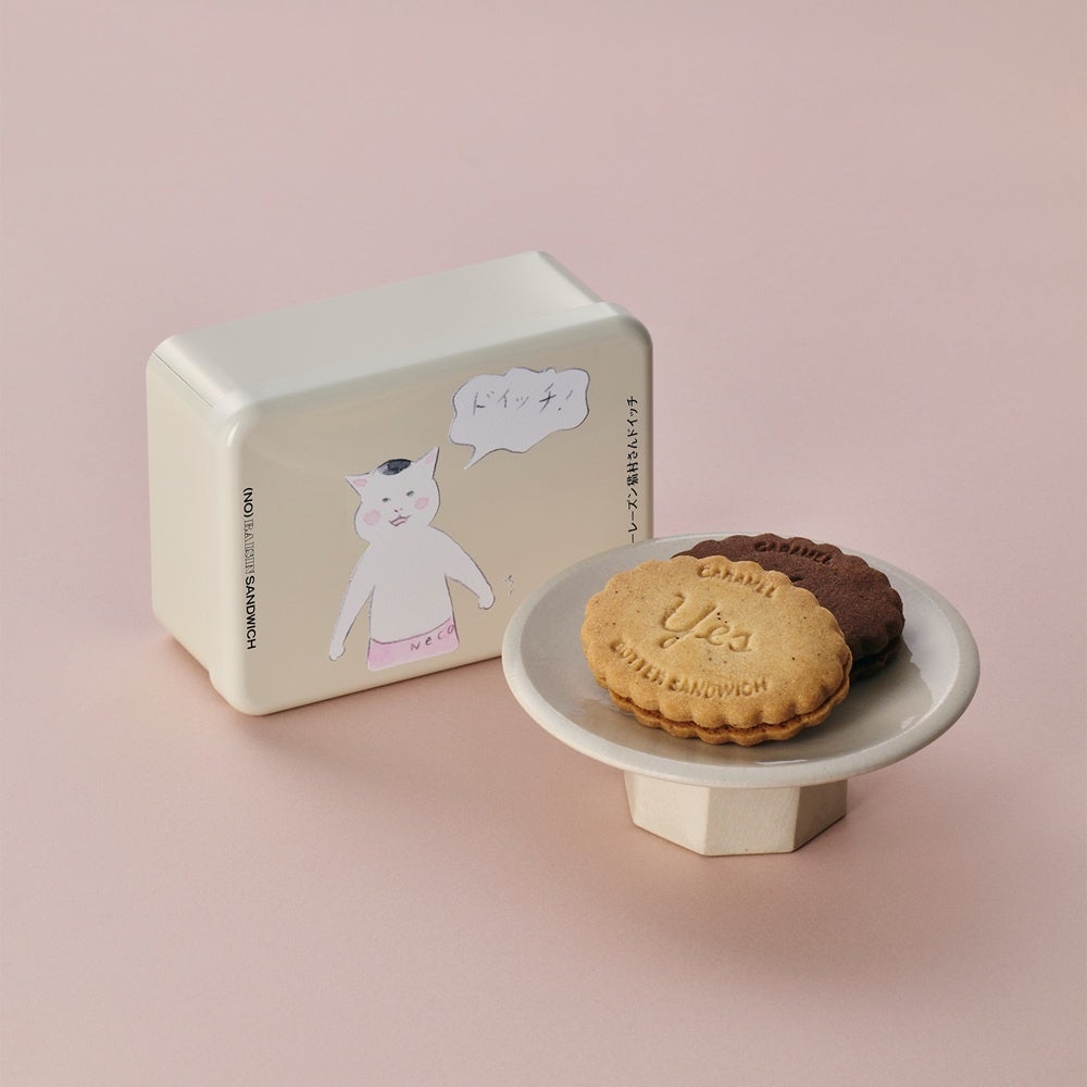 概要:「食べ終わったら何入れようかな」の猫村缶(猫村さんは商店街のクーポンを入れるそうです)に2種のキャラメルバターサンドをご用意しました。「レーズン キャラメルバターサンド」は発酵バターのサブレに、濃厚バニラキャラメルと果実味溢れるレーズンが溶け合い、「ショコラアプリコット キャラメルバターサンド」はクーヴェルチュールチョコレートを使用し、紅茶ミルクキャラメルとアプリコットがうっとり香りの層を作り出します。