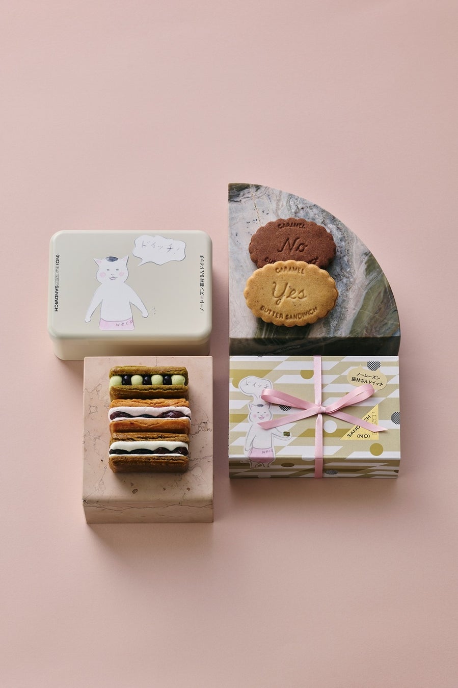 概要:縦結びがキュートなリボンを解くと3種のバターサンドが(猫村さんは、味がたくさんあること自体が嬉しいそうです)。丁寧な手仕事で仕上げるケーキのようなサンドをお楽しみください。