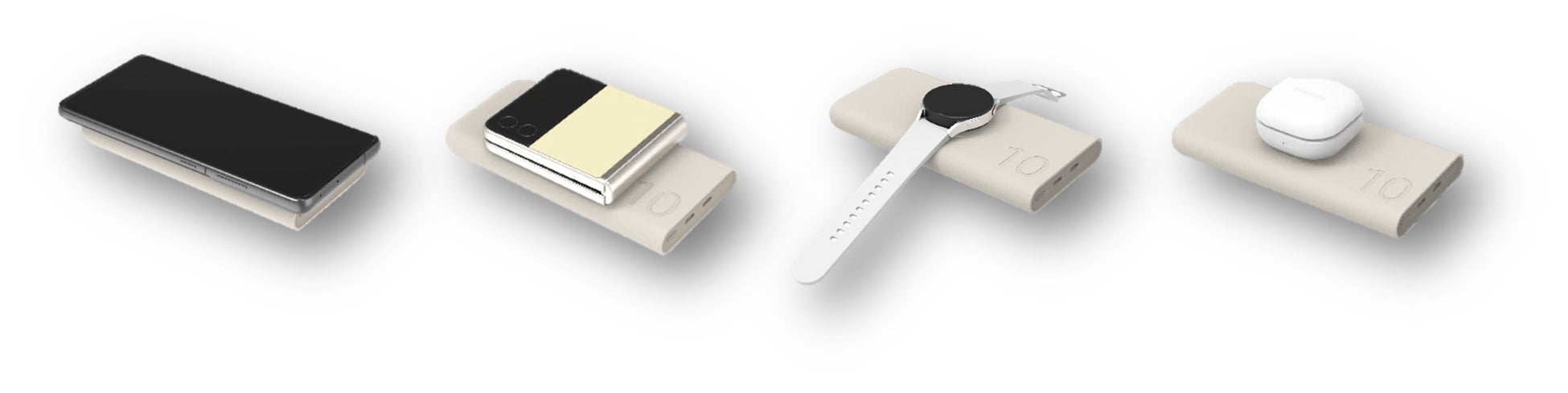 ケーブル経由での超急速充電だけでなく、パック上にスマートフォンやGalaxy Buds(Bluetoothイヤホン)・Galaxy Watch(スマートウォッチ)を置いてワイヤレス充電をすることができます。