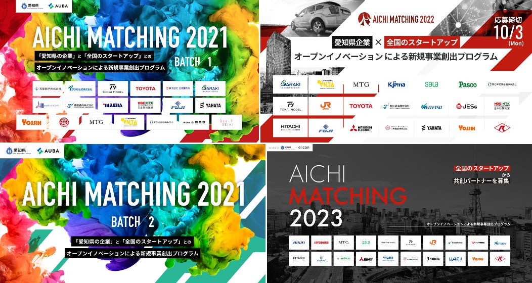 eiiconがこれまで愛知県と取り組んだ『AICHI MATCHING 2021 Batch1/Batch2』『AICHI MATCHING 2022』『AICHI MATCHING 2023』