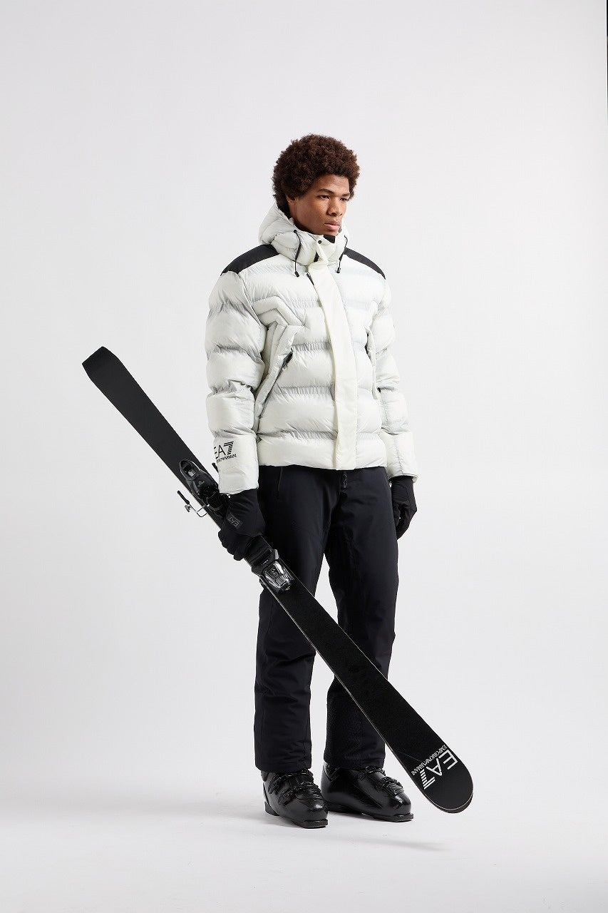 EA7 エンポリオ アルマーニは、サッカーのイタリア公式選手団のオフィシャルスーツをはじめ、様々な国際的および有名スポーツチームへのユニフォーム提供を行うことでも知られる、エンポリオ アルマーニのスポーツラインブランドです。EA7の「7」は、7つのスポーツ:バスケットボール・テニス・ゴルフ・ウォータースポーツ、ウィンタースポーツ、アウトドア、トレーニング、を表しています。本コレクションは、「7」の数字の意味の1つでもある、ウィンタースポーツに関連するコレクションになります。