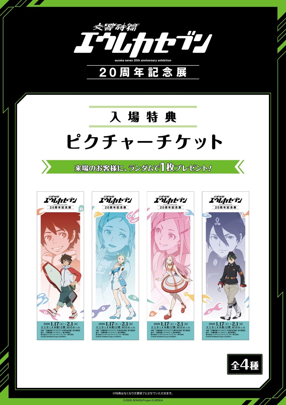 TVアニメ「交響詩篇エウレカセブン」の放送20周年を記念し、2026年1月4日(日)まで有楽町マルイにて開催されている「交響詩篇エウレカセブン20周年」の大阪開催が決定し、本日よりチケット販売を開始いたします。