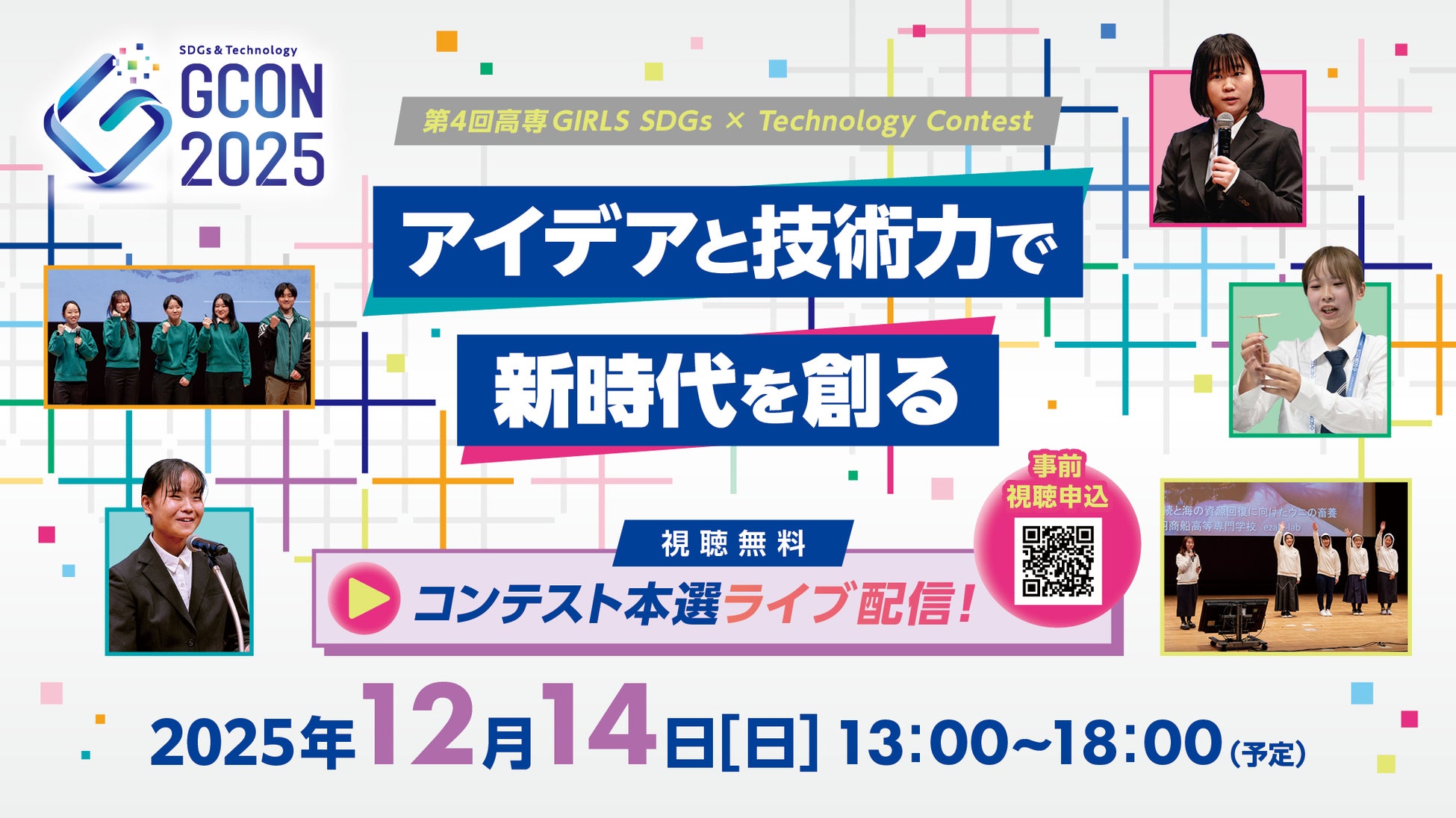 独立行政法人国立高等専門学校機構(東京都八王子市 理事長:谷口功)は、日本経済新聞社と共催で、「第4回 高専GIRLS SDGs × Technology Contest(高専GCON2025)」を開催します。このたび、書面審査、面談審査を突破し、本選(成果発表会)に出場する12チームを決定しました。