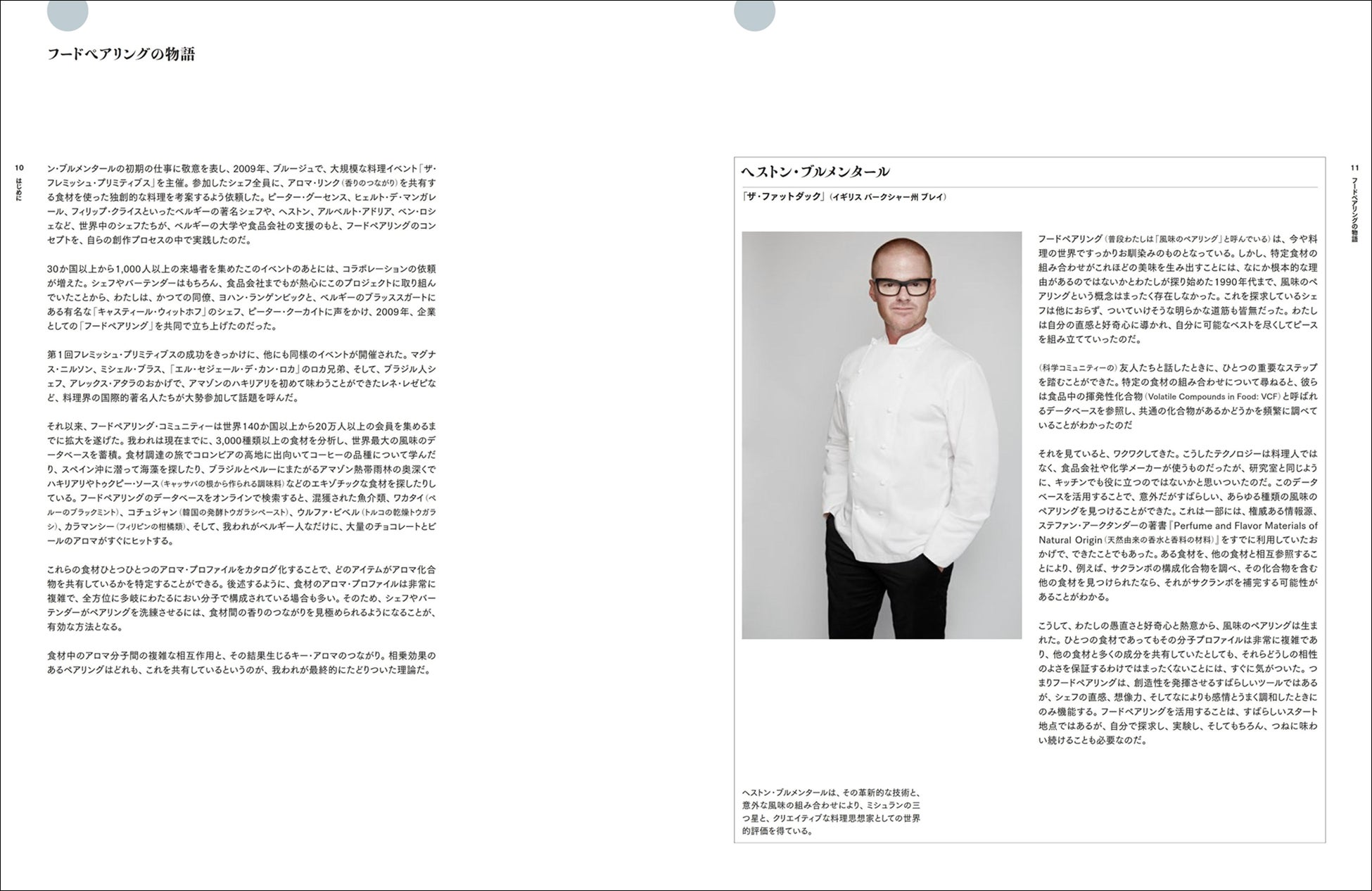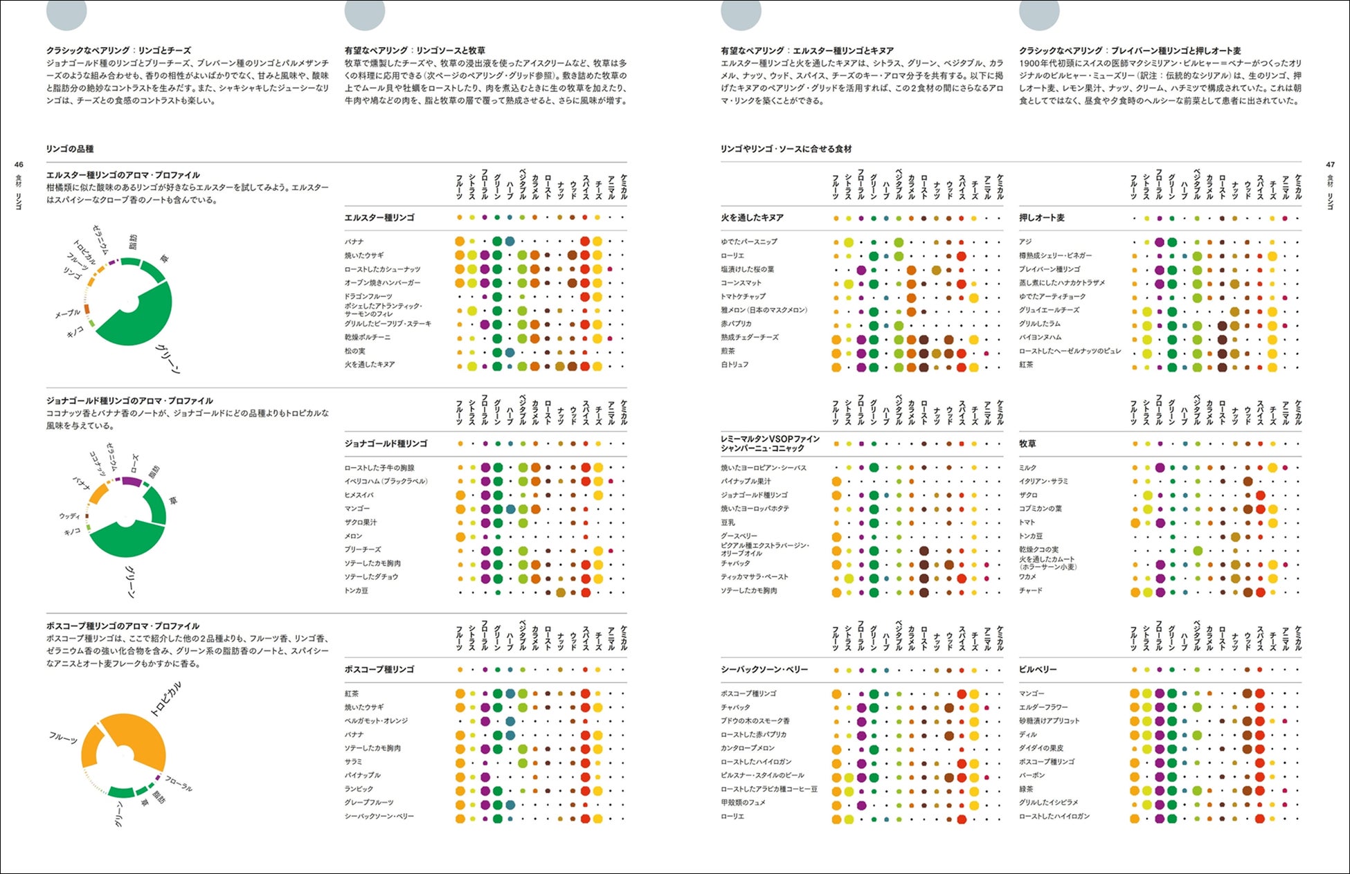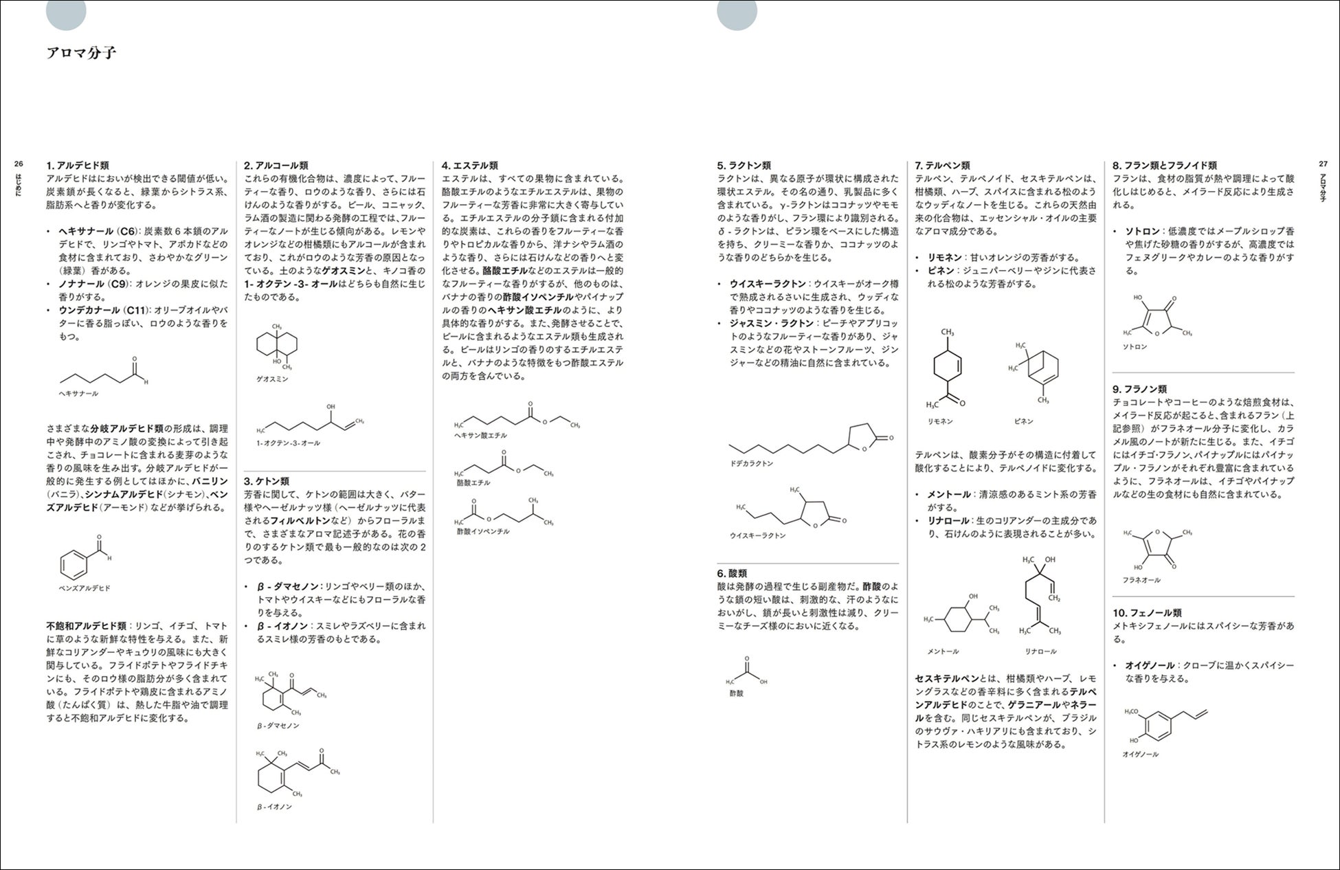ニューロ・ガストロノミー(脳はどのように風味を認識するのか)と、 食材が含む化学成分由来のアロマ・プロファイル分析を融合させた画期的な研究とともに、さまざまな食材の組み合わせが探求されてきました。キウイと牡蠣といった異例のペアリングがなぜ実際に効果と発揮するのか、レシピ創作におけるアロマの意義など、本書ではその理由を解説します。また、フードペアリングの仕組み、食材同士のおいしい組み合わせを識別する約1000食材のレシピ創作ツールまで、読み応え抜群の一冊。