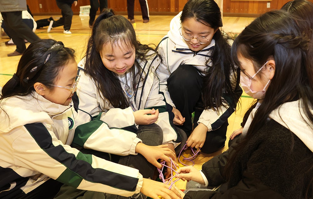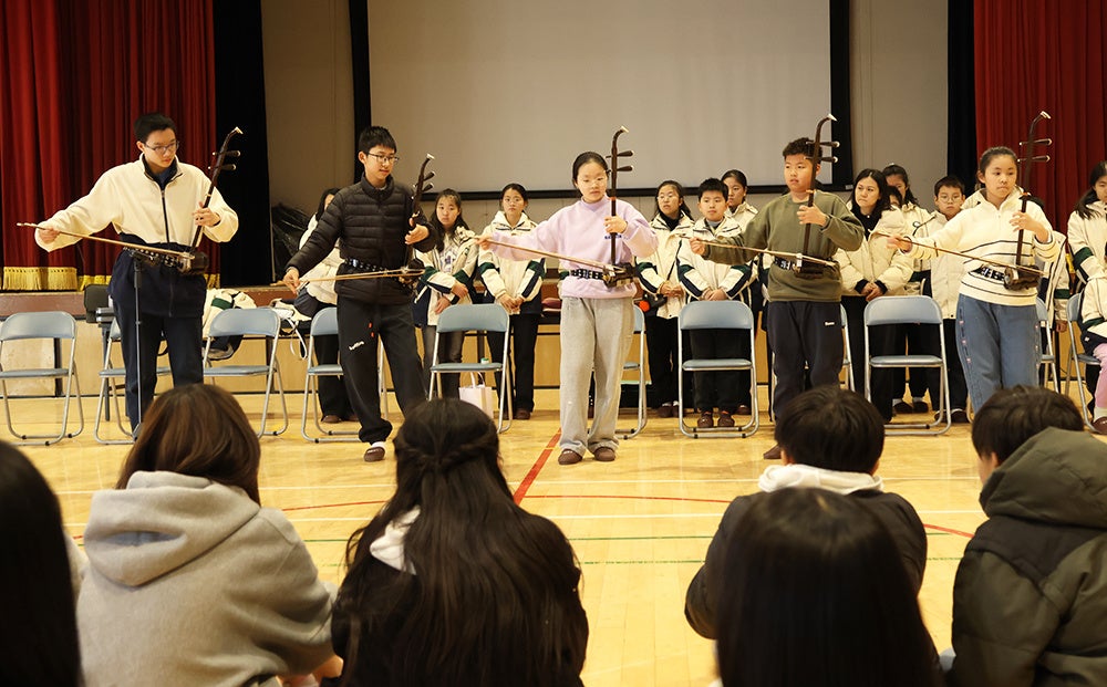 高槻市と常州市は、昭和62年に友好都市提携。これまで、教育、文化、医療・保健、産業など幅広い分野で活発に交流が行われてきました。今回、来日した常州青少年民族楽器代表団は、7歳から16歳までの青少年が所属し、二胡(にこ)や琵琶(びわ)などの民族楽器の演奏会やコンクールなどに出演するなど精力的に活動を行っています。この日はまず、柱本小学校を訪れた同団を6年生23人がリコーダーや鍵盤ハーモニカ、打楽器などを使った演奏で迎えました。その後、同団は、約5種類の中国民族楽器を使用した演奏を披露。6年生は、初めて見る中国民族楽器に関心を寄せながら演奏を聴いていました。演奏後は、6年生の児童たちが自ら企画した、日本の伝統的な遊びを紹介するコーナーをワークショップ形式で開催。あやとりやけん玉など5か所のブースに分かれ、同団の子どもたちに遊び方を教えたり、一緒に遊びを楽しんだりと交流を深めました。同団の子どもがあやとりをする際にうまく指を通すことができず難しそうにしていると、ジェスチャーを交えながら遊び方のコツをアドバイス。参加した6年生は、「中国の子どもたちと一緒に時間を過ごすことができて、繋がりが深まったと思う」「とても良い思い出を作ることができた」と嬉しそうに話していました。