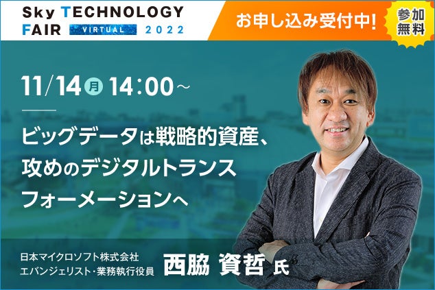 <オンラインイベント「Sky Technology Fair Virtual 2022」>戦略的資産としてのビッグデータ活用に関する講演をライブ配信いたします