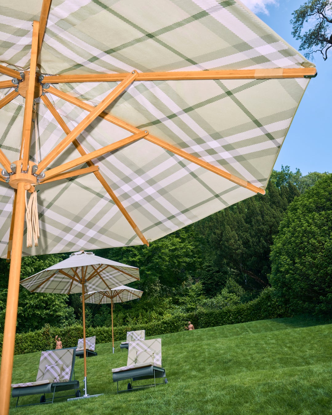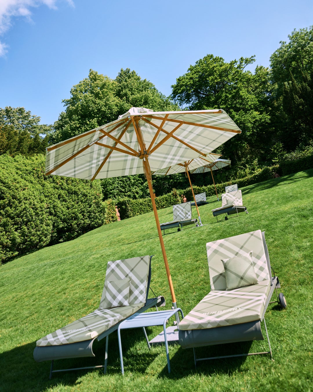 6月初旬からは、The Newtとバーバリーのデザインコードを融合させた特別なゲスト体験を展開します。バーバリーが誇るヘリテージチェックと、エステートのシグネチャーであるグリーンを融合したカスタムチェックが、施設各所に登場します。約2,000エーカーに及ぶガーデンでは、クロッケー芝にバーバリーチェックの模様が描かれ、専用のゴルフバギーで園内を巡ることも可能です。