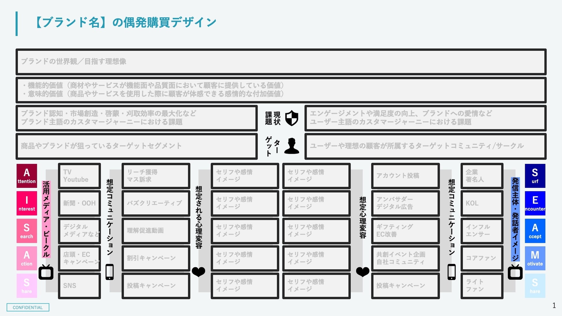 「偶発購買デザイン」を実践で役立てていただくための、5つのワークシート(偶発購買デザインワークシート、CB×UBサンドブランドワークシート、ターゲット像一覧化ワークシート、ブランドフォーメーションデザインワークシート、偶発購買設計フレームCRISPチェックリスト)がついています。購読者限定で無料で利用いただけます。