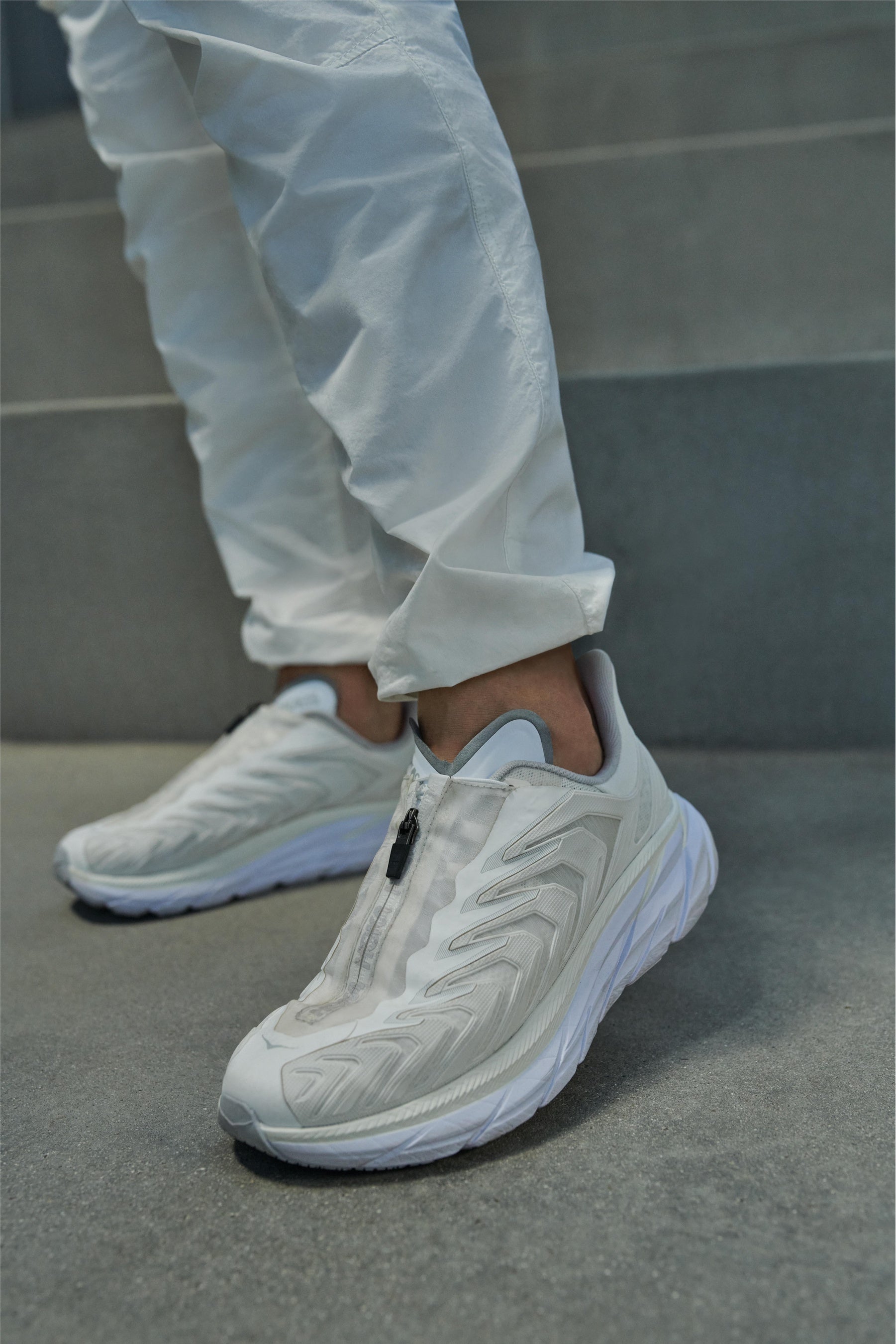 HOKAのアイコン的存在であるクリフトンシリーズ。「PROJECT CLIFTON」は、クリフトンシリーズの最新作「CLIFTON 8」のミッドソールとアウトソールをベースに、優れたクッション性はそのままに、エッジの効いた5-Dプリントのアッパーを採用したライフスタイルシューズです。クラシックなモデルを近未来的なデザインへと昇華させました。さらに、クイックレースシステムで簡単に着脱が可能。水の侵入を防ぐAquaguard(R)ジップを採用し、どんな天候でも快適な履き心地を提供します。■ PROJECT CLIFTON (プロジェクト クリフトン)