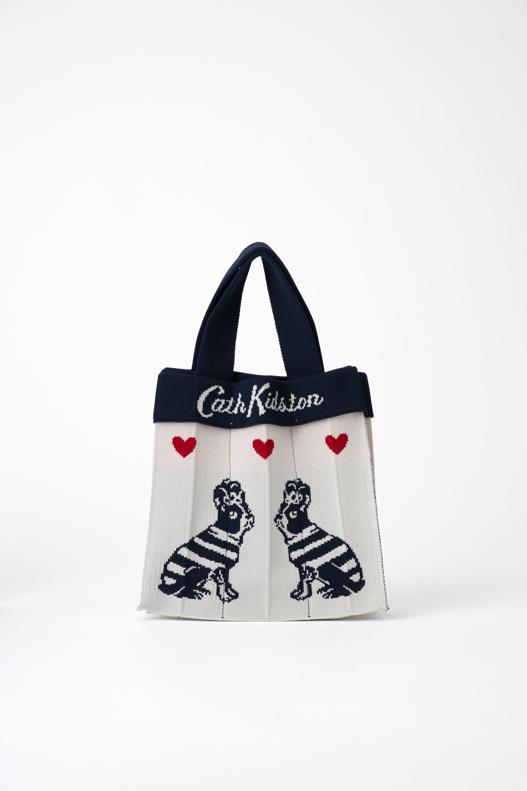 お弁当や水筒、お財布などにちょうどいいトートバッグ Co-Knittyには、Cath Kidstonの人気アイコンでもある、フレンチブルドッグのBarneyが向かい合った愛くるしいデザインが登場。KNT365の代表的なアイテムでもある斜め掛けもできるKnittyは、やさしいタッチで描かれた近衛兵がネイビーとアイボリーで構成されたトラッドな雰囲気です。また、大容量かつトートとショルダー2つのハンドルがあり便利なMamは、以前Co-Knittyで大人気だった"Gingham Rose"のデザインをMam用にアレンジした、待望のデザインが登場します。