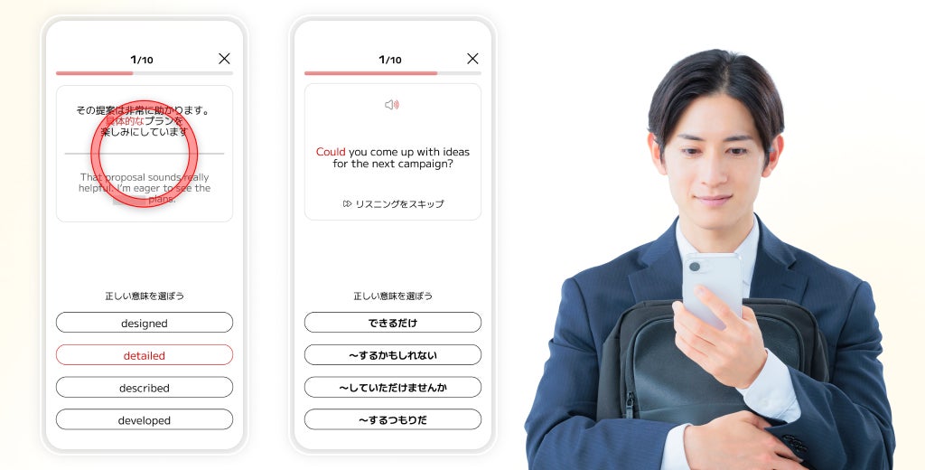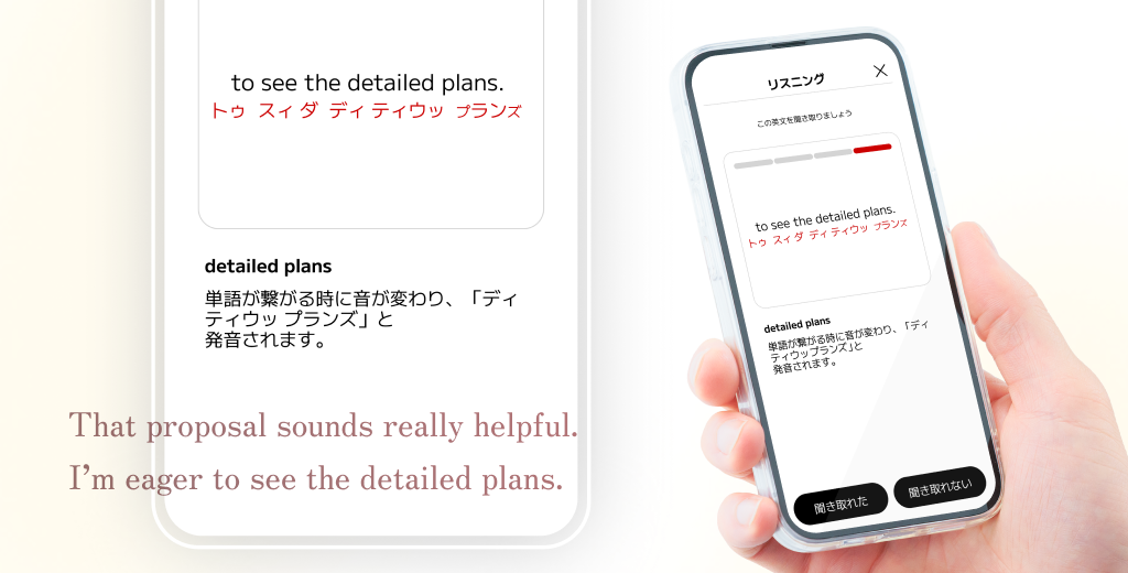 通勤中など声が出せない場面では、発話を必要としないメニューに切り替えることも可能です。丹念なインプットと、隙間時間に反復するアウトプットの組み合わせが、効率的な学習を実現します。
