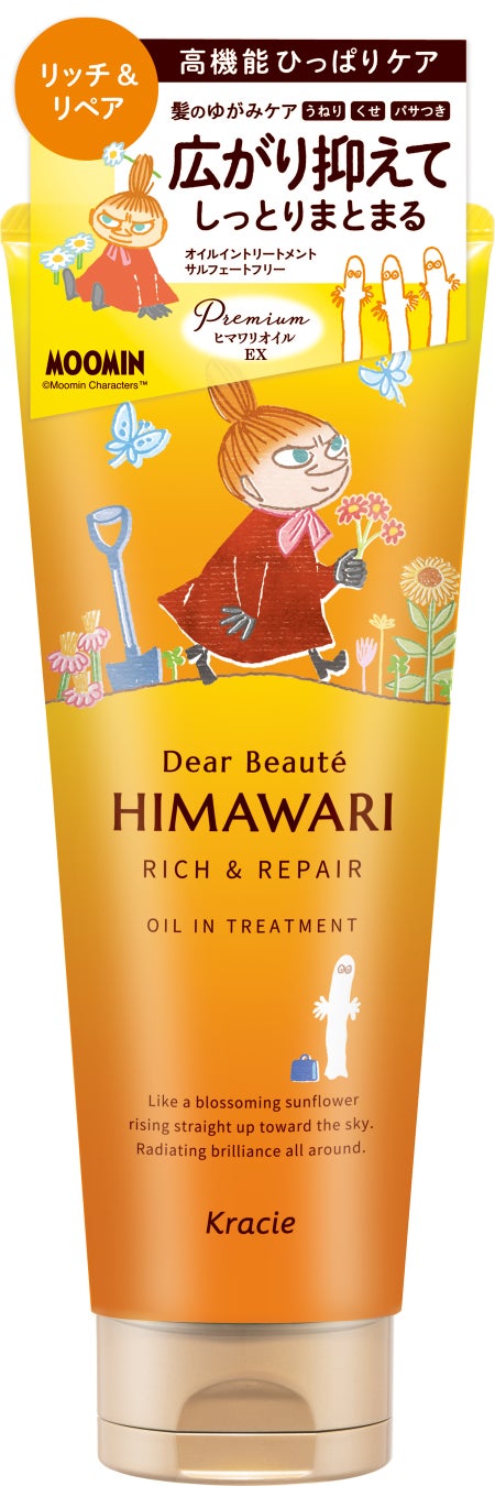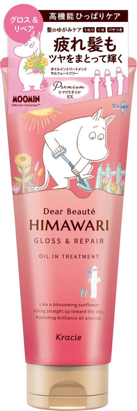 また、「ディアボーテ オイルイントリートメント」3種「リッチ&リペア」、「グロス&リペア」、「スムース&リペア」も同時に、限定「ムーミン」コラボデザインで登場。「ムーミン」キャラクターがガーデニングをたのしむ様子が描かれています。トリートメントは「髪のひっぱりケア」をしてダメージを補修しながら、髪のゆがみを整え、扱いやすい髪へ導きます。