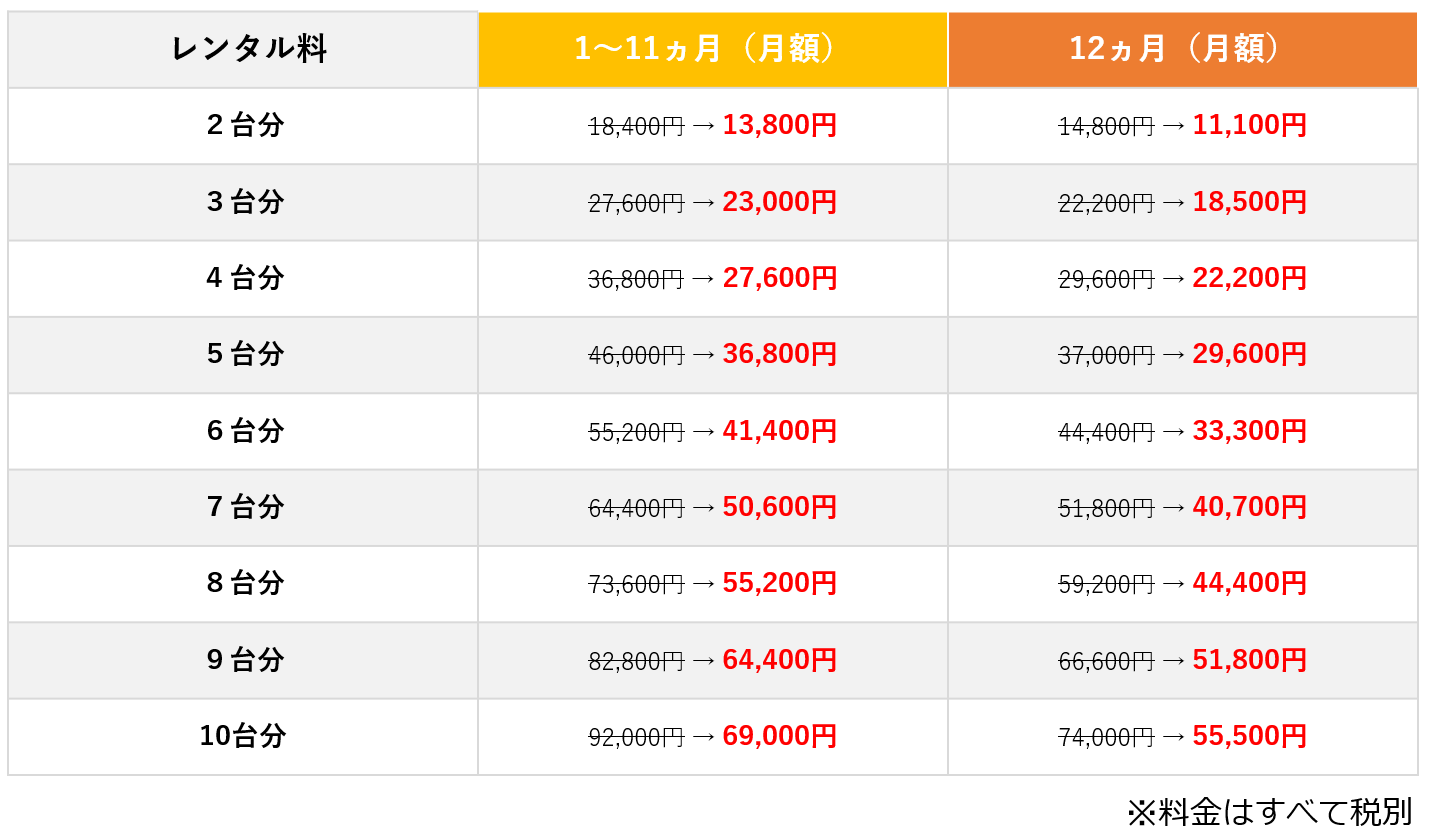 お申込みいただいた台数の半分、レンタル料金を半額にします!!