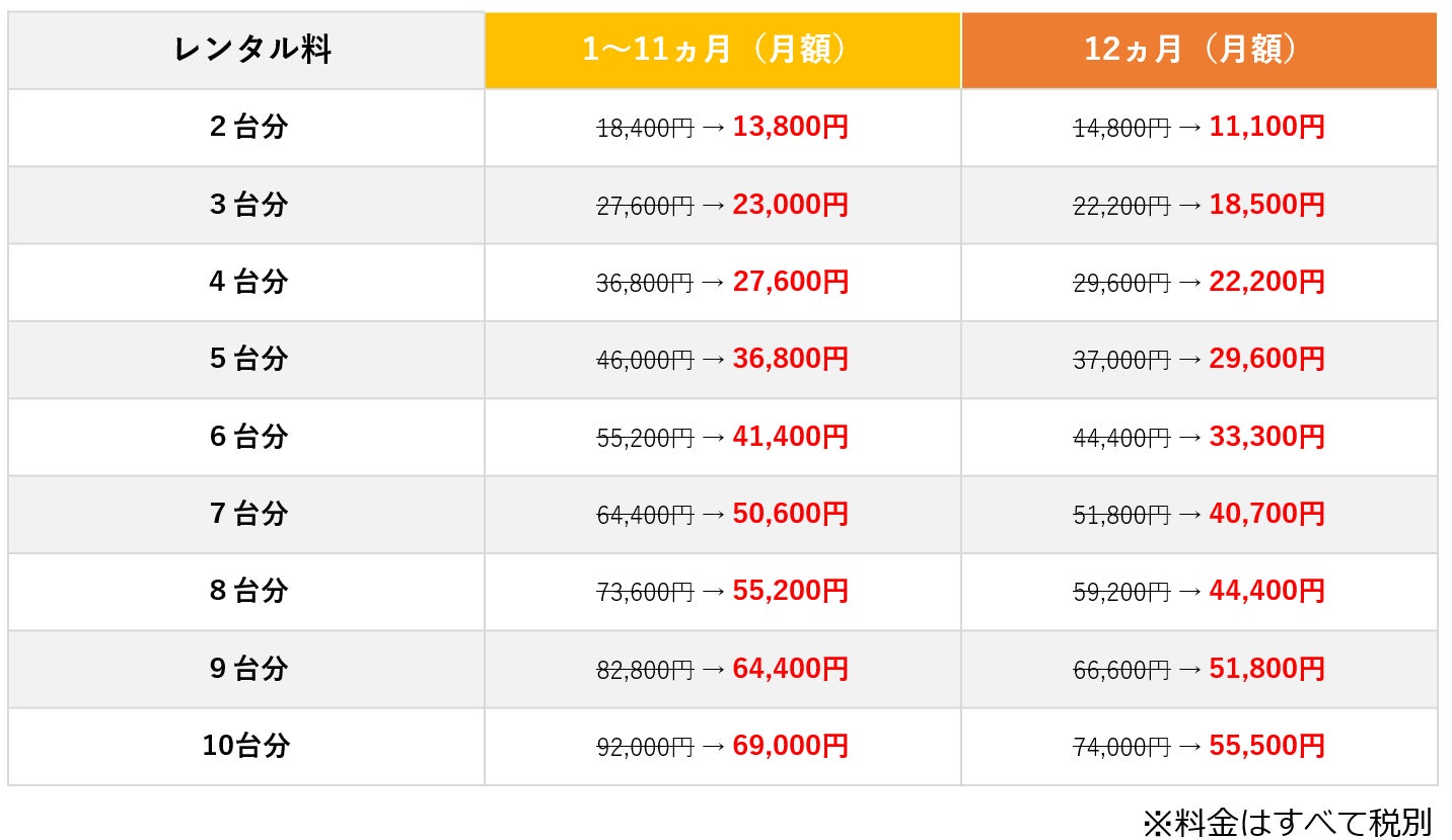 ※1契約で10台以上のお申込も可能です。お気軽にお問い合わせください。
