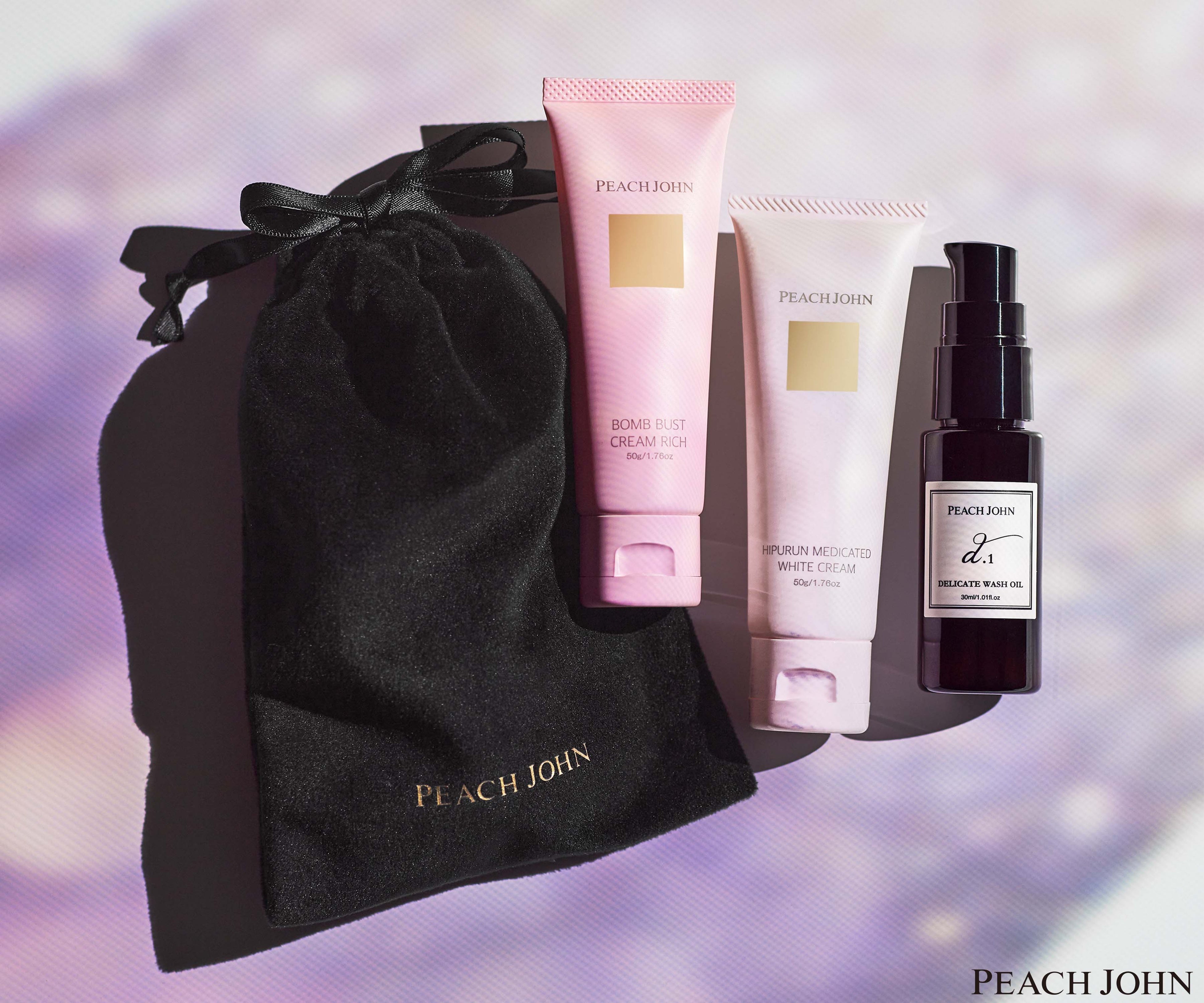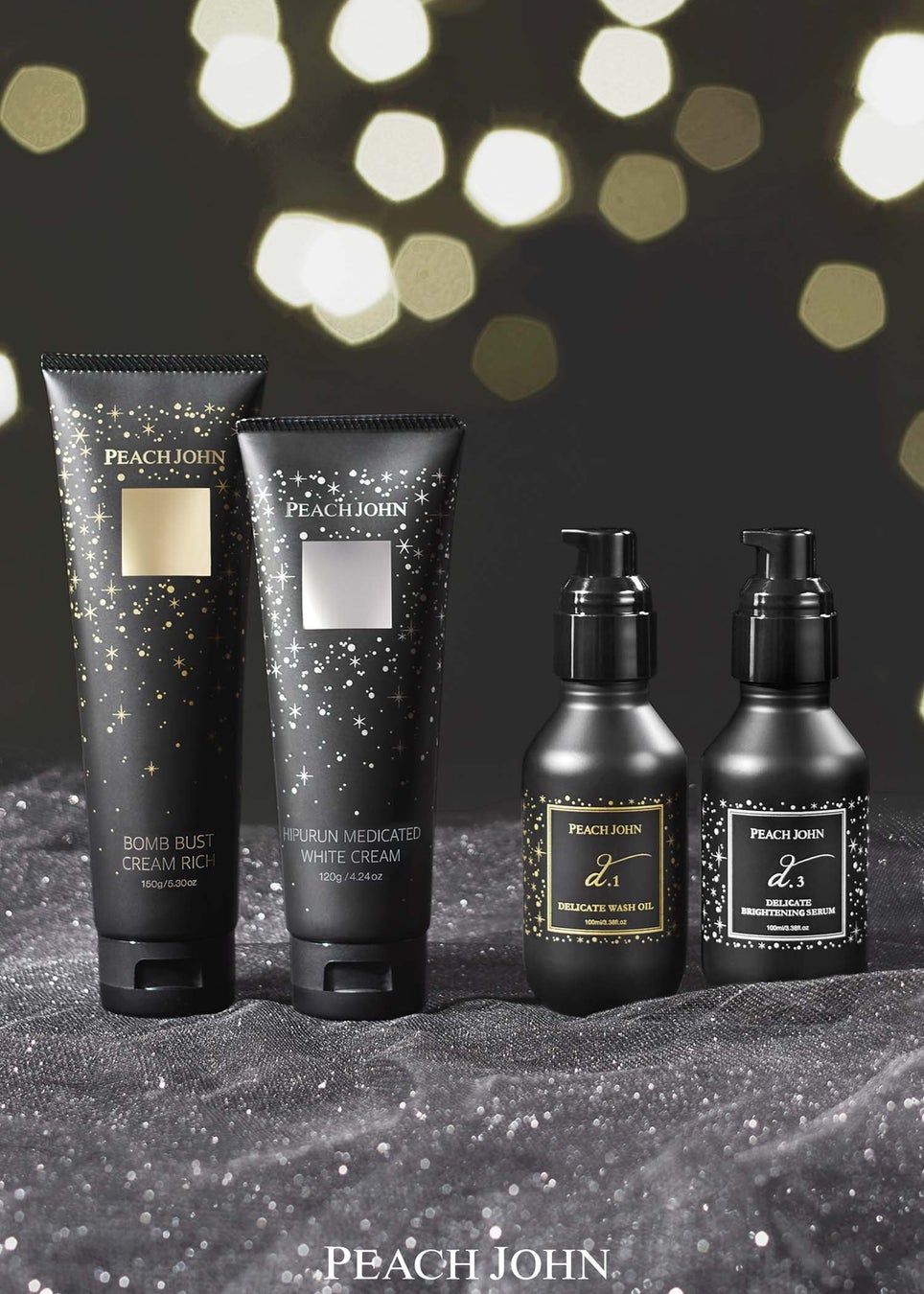PEACH JOHN BEAUTYクリスマスコレクションが発売!バスト&ヒップクリーム、デリケートゾーンケアにホリデイ限定の香りとパッケージが登場。数量限定の巾着ポーチ付きコフレも。