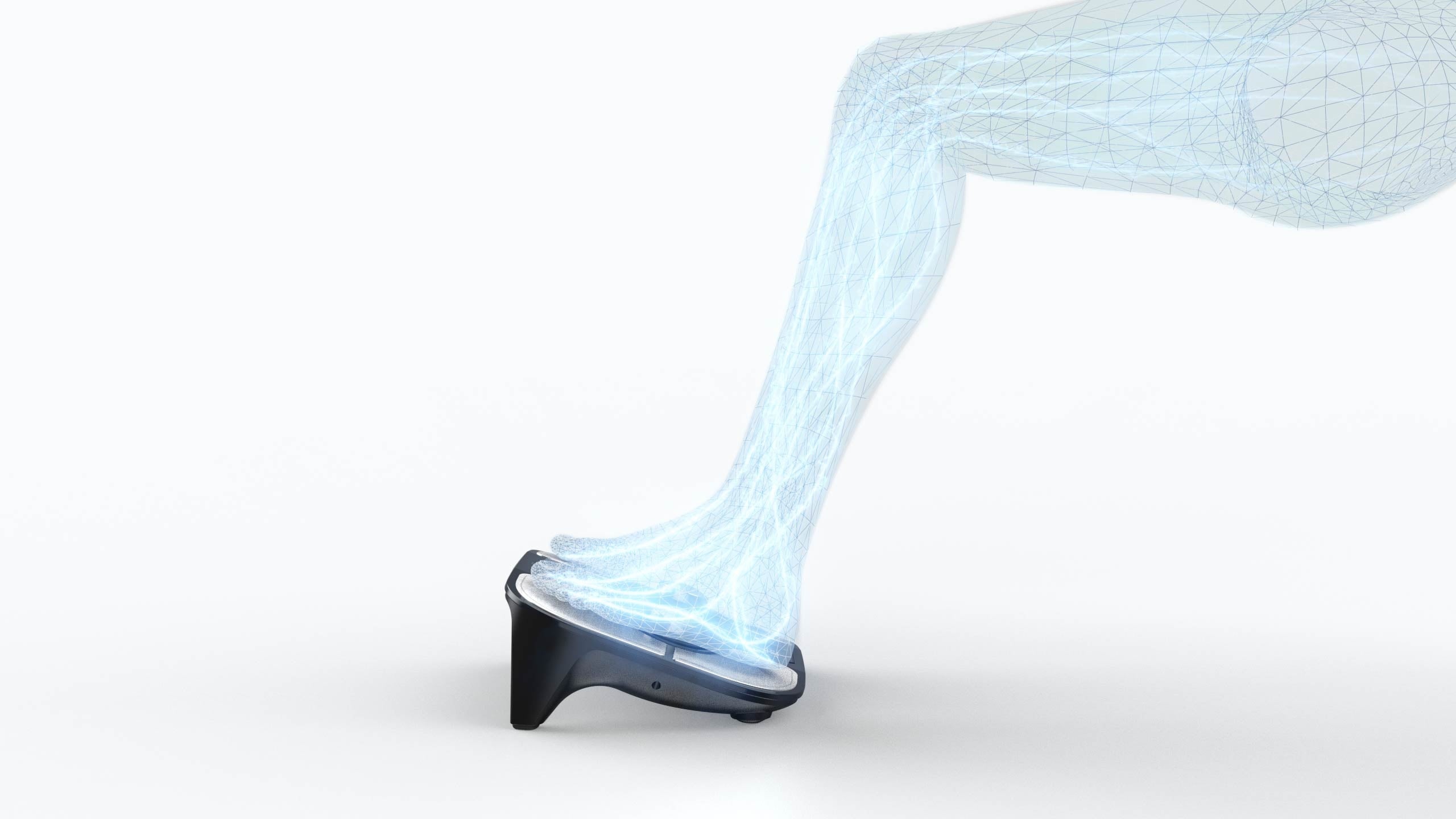 〈足裏モード〉足裏の前後のプレート間にEMSが流れ、足裏の内在筋を集中的にトレーニングします。